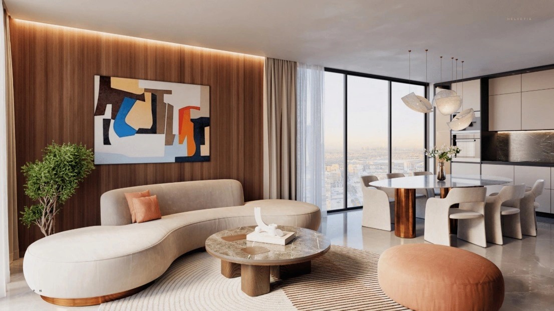The Helvetia Residences by Refine Development showcases a contemporary architectural design that draws inspiration from Swiss precision and elegance while embracing Dubai’s modern urban lifestyle. Its exterior stands out with clean lines, expansive glass façades, and a sleek structure that emphasizes natural light and open views, giving the project a timeless yet modern appeal. Inside, the residences are thoughtfully designed with spacious layouts, high-quality finishes, and a neutral color palette that creates a sense of warmth and sophistication. The interiors are complemented by premium fittings and fixtures, offering a seamless blend of style and functionality. Each apartment comes fully furnished with carefully selected European-inspired furniture that combines comfort with durability, ensuring a turnkey living experience. The use of branded kitchen appliances, stylish cabinetry, and modern lighting solutions adds to the luxurious feel, while the choice of furniture reflects both elegance and practicality, catering to end-users and investors alike. Overall, Helvetia balances striking architecture, refined interiors, and well-curated furnishings to deliver a lifestyle that is both aspirational and practical in one of Dubai’s most sought-after communities.