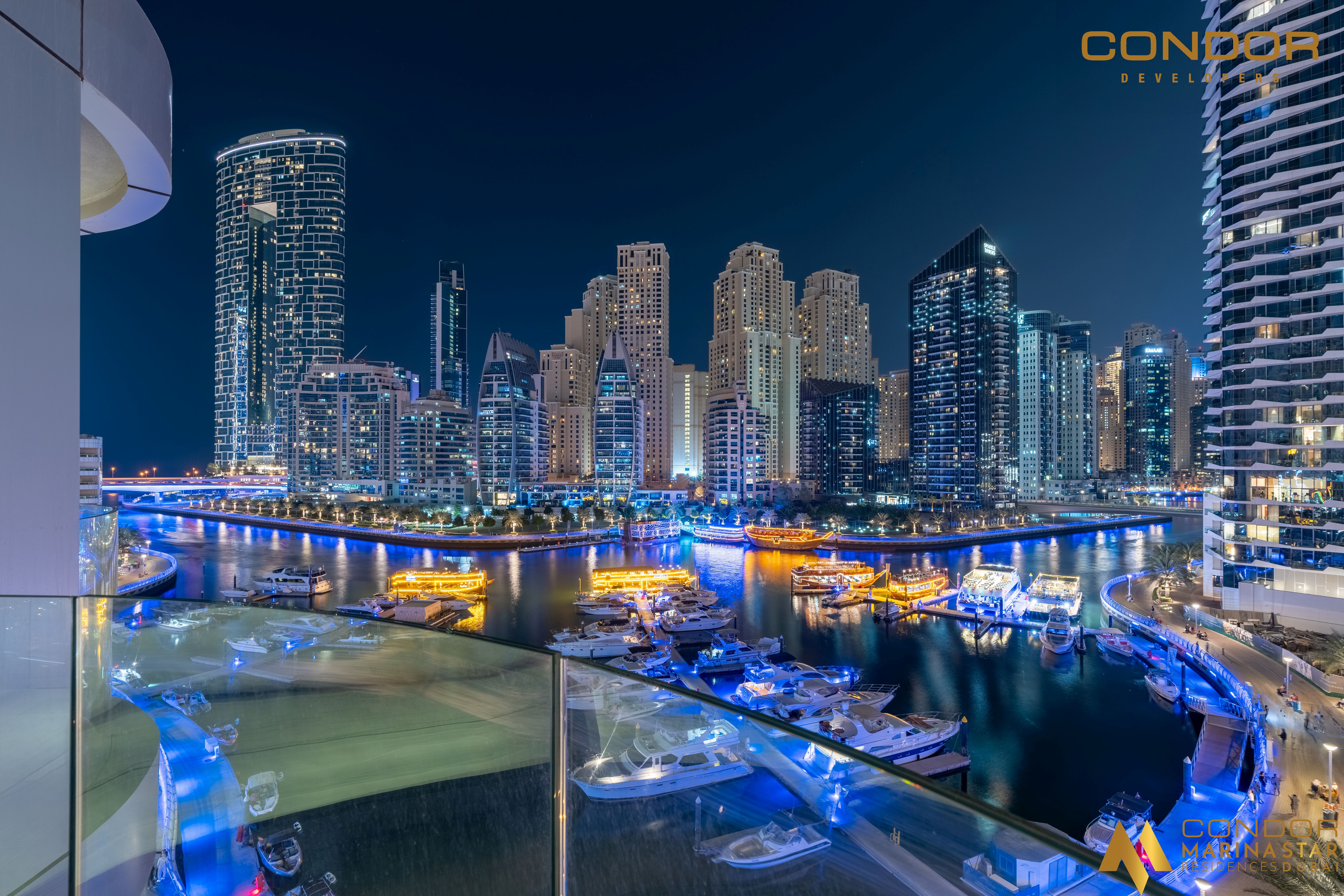 Condor Marina Star Residences is a 27-story luxury residential tower located in the prestigious Dubai Marina, developed by Condor Group. Designed to offer a perfect blend of modern architecture, premium finishes, and exceptional comfort, the development includes a wide variety of unit types—from studios and 1- to 2-bedroom apartments to spacious duplex villas and penthouses. Positioned strategically along the marina, residents enjoy sweeping views of the water and Dubai’s iconic skyline, as well as convenient access to key destinations like Dubai Marina Mall, JBR Beach, and Sheikh Zayed Road. The project is thoughtfully equipped with upscale amenities, including a rooftop infinity pool, a state-of-the-art gym, yoga studio, spa, and co-working spaces. Interiors feature open-plan layouts, floor-to-ceiling windows, and high-end materials that elevate everyday living. With landscaped gardens, children’s play areas, and proximity to schools and healthcare facilities, Condor Marina Star Residences offers an ideal setting for both relaxation and vibrant community living—perfect for individuals and families seeking a premium waterfront lifestyle in one of Dubai’s most dynamic neighborhoods.