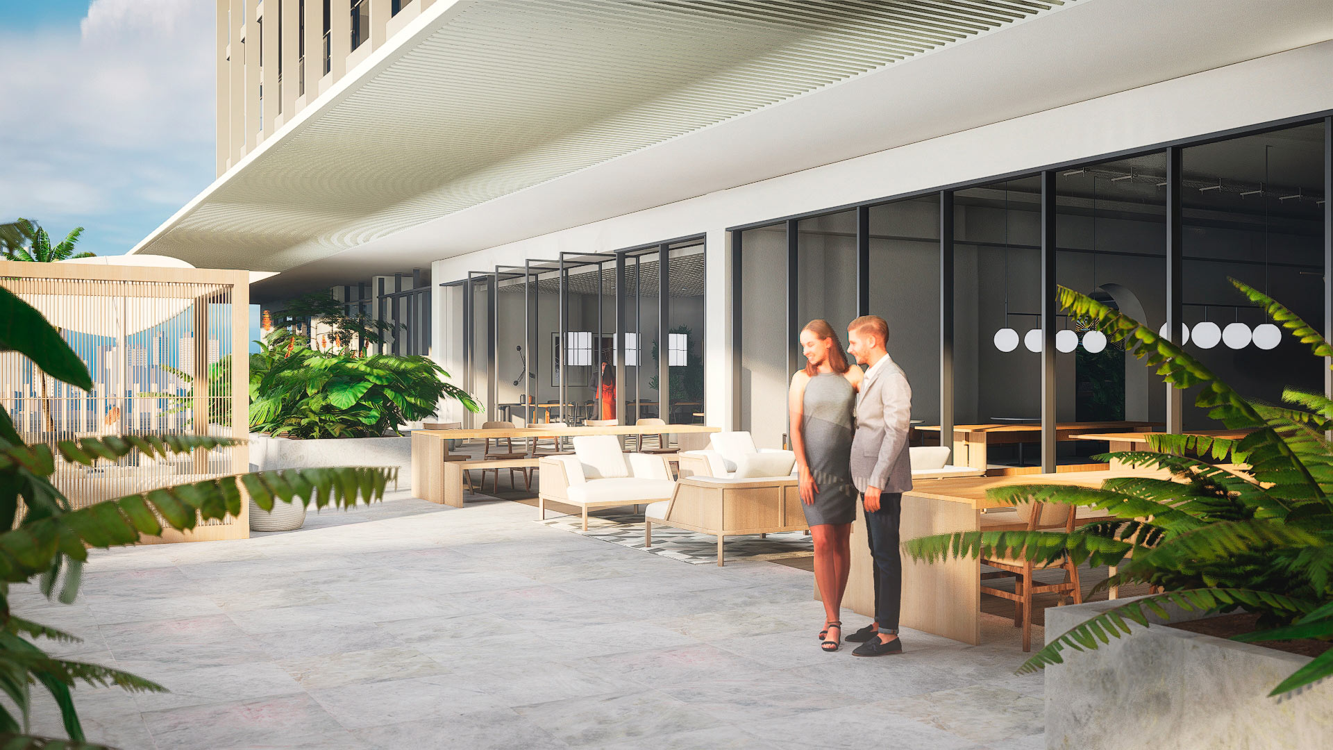 Studios and apartments in Upside LivingThe apartments at Upside Living feature a spacious balcony, a kitchen with a cooking island, a combined dining/living room area, a bedroom with a built-in wardrobe, and a bathroom with a shower cabin. The studios include a small hallway, a separate bathroom with a shower cabin, a combined bedroom/living room, and an open or semi-open kitchen. Some of the studio options include balconies and sliding glass doors separating the bedroom from the living room.All the kitchens in the apartments will be equipped with SMEG-brand kitchen units and appliances. The bathrooms will have an exquisite design with accessories and plumbing fixtures from Carlo Frattini & Geberit. The studios and apartments will feature energy-saving LED lighting, modern home automation systems, and security systems from leading European brands.