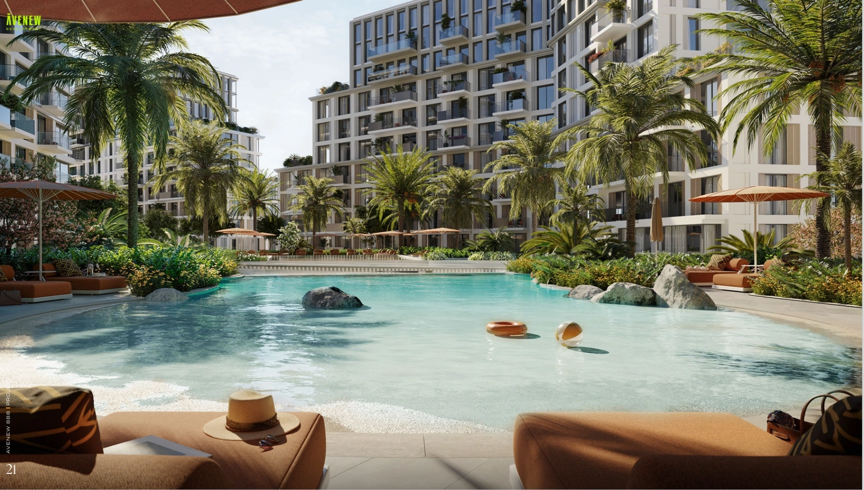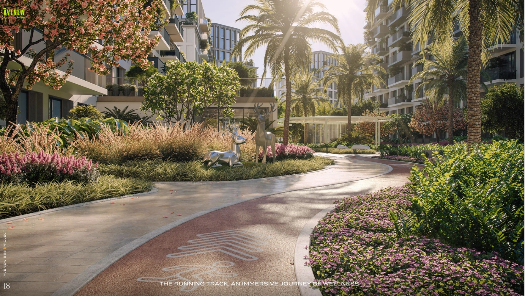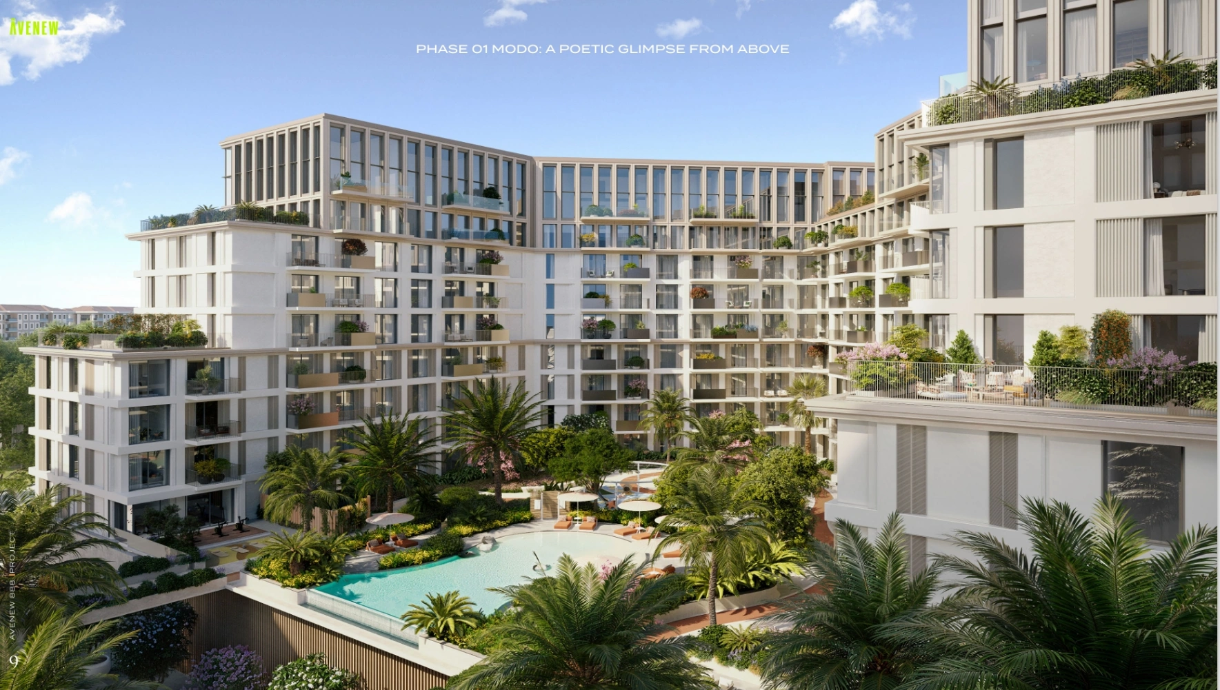 Modo at Avenew 888 is a small community of five 11-story buildings where modular architecture and large windows blend perfectly with the greenery. The project is ideal for those who value communication but also love privacy — here you can spend time in the coworking space and library on the first floor, or simply go to your own balcony overlooking the garden. Inside, there are bright open-plan living rooms, kitchens with minimalistic facades and quartz countertops, bedrooms with walk-in closets, and designer bathrooms. In the duplexes, the living area is on the lower floor and the bedrooms are on the upper one. Panoramic windows offer excellent views of the central boulevard and the beautiful swimming pool.Importantly, residents will enjoy a variety of resort-style amenities, including two lagoon pools and a separate pool for children, a running track, outdoor and indoor fitness centers, a basketball court, tennis tables, and an open-air amphitheater. The developer has paid special attention to pets — for example, the community has its own dog-park.The project is located in the center of the rapidly developing Dubai South area, right next to Al Maktoum Airport and 15 minutes from Expo City Dubai, which explains the high demand for rentals in these places. In addition, this area is chosen by global logistics and technology companies, and thanks to the new metro line and airport expansion, prices for properties at Dubai South are sure to rise. The proximity to major highways allows you to reach the coastline and the business clusters of Dubai Marina and JLT in 25 minutes, and the area itself features green boulevards and a pedestrian-friendly environment that is rare for a metropolis.