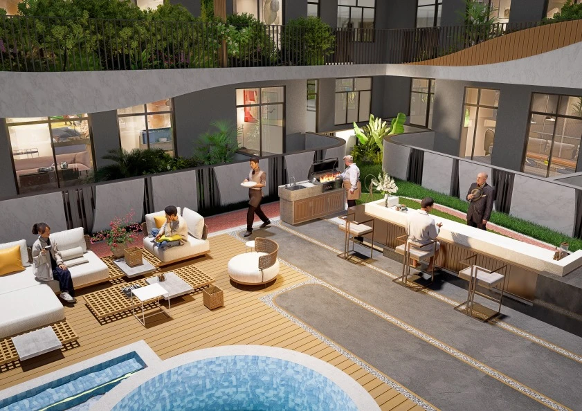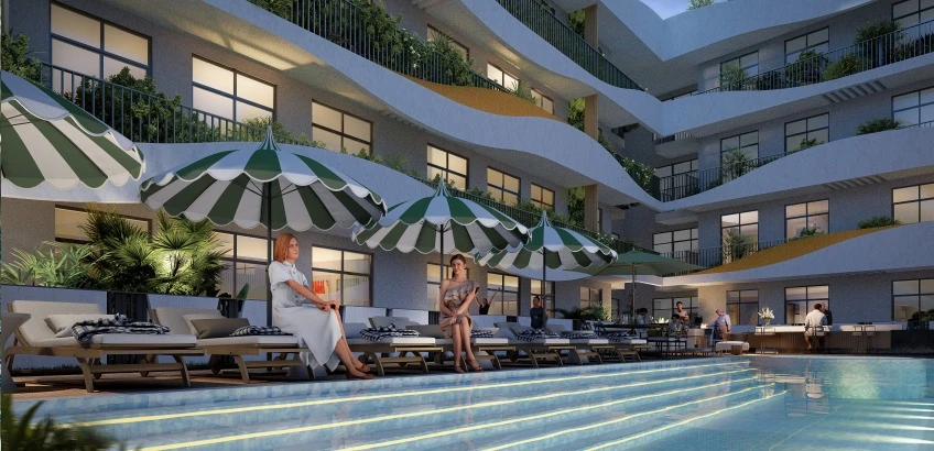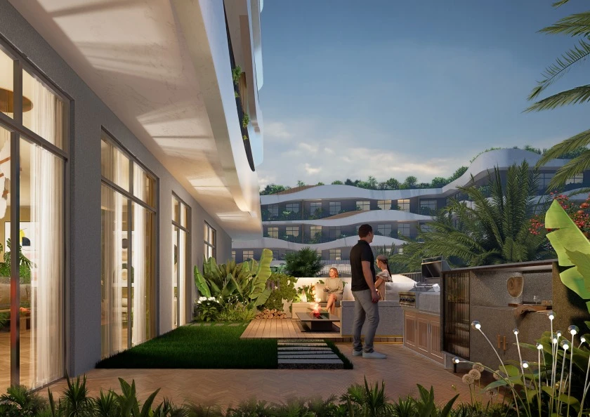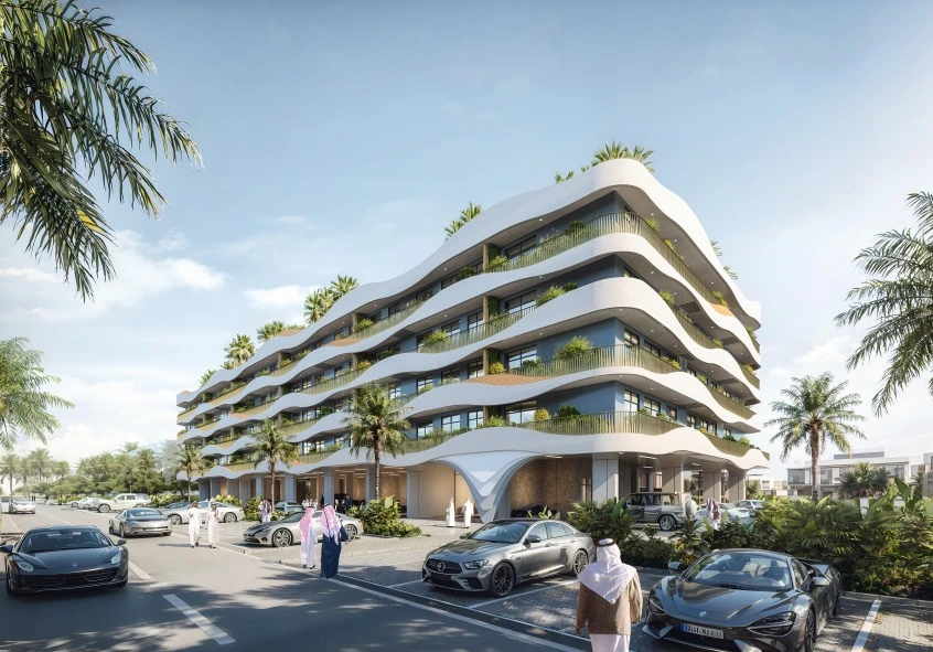 Oasis Residences, developed by Al Helal Al Zahaby Real Estate, is a modern low-rise residential project located in Dubai South that blends contemporary architecture with nature-inspired design. The exteriors feature clean lines, neutral earth tones, large windows, and cantilevered roof structures that provide shading and reduce energy consumption, creating an environmentally efficient and visually appealing façade. The interiors are designed with timeless minimalism and quiet luxury, incorporating high-quality finishes, natural materials such as wood and stone, neutral color palettes, and thoughtfully planned layouts to maximize space and comfort. Each apartment is fully furnished with modern kitchen appliances, offering elegance and functionality. The project’s unique aspects include sustainable architectural elements, seamless integration with landscaped surroundings, and resort-style amenities such as a swimming pool, gym, yoga zone, jogging track, kids’ play area, and BBQ area, providing residents with a balanced, comfortable, and community-oriented lifestyle.