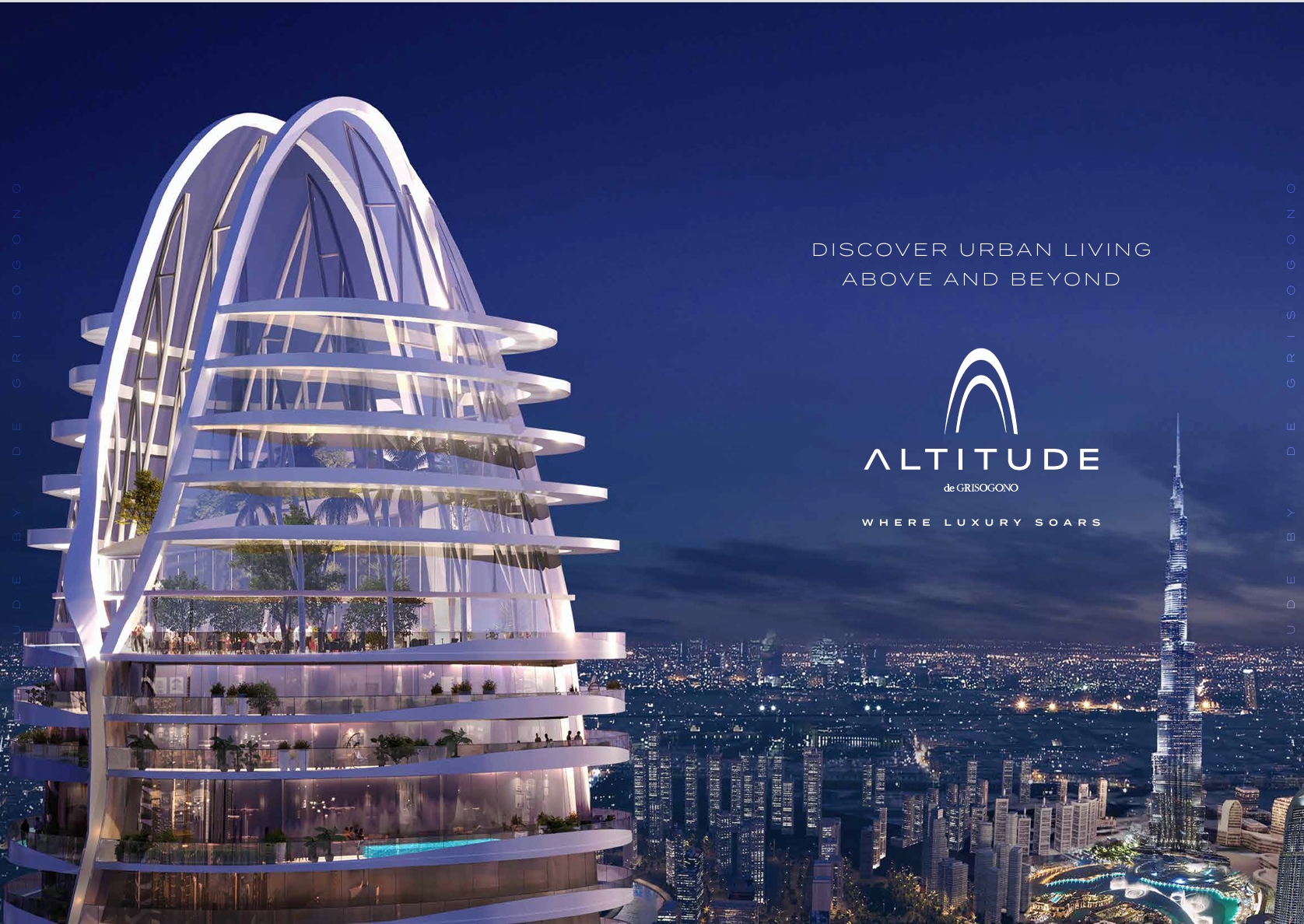 Altitude de GRISOGONODesigner apartments by de GRISOGONO in Business BayLet your lifestyle ascend at Altitude de GRISOGONO, Dubai’s newest icon, where luxury soars and urban living goes above and beyond. Nestled in Business Bay, the tower overlooks the Dubai Canal and offers stunning vistas of city's skyline.Inspired by the enchanting opal, every element of this exquisite tower beckons you to explore a world of opulence. Branded by de GRISOGONO, the luxury apartments combine neutral tones, natural light, clean lines, and luxurious textures, creating a refined living space that inspires comfort and sophistication.Discover a world of amenities and experience new heights of wellness with a spa, salon, beauty bar, hydrotherapy, and temperature-controlled flotation pods. At Altitude de GRISOGONO, stunning panoramic views, urban living and exceptional experience converge to create an extraordinary lifestyle.Inspired by the Greek word 'Chrysogonos' – which means 'begotten of gold' – de GRISOGONO is a luxury brand founded in 1993 by black diamond specialist Fawaz Gruosi, an Italian of Lebanese descent. de GRISOGONO traces its roots to traditional high jewellery that found favour during the Genevan Renaissance of the 16th century. However, even as a modern atelier, the brand stays true to time-honoured craftsmanship while its finest timepieces and jewellery continue to evolve.