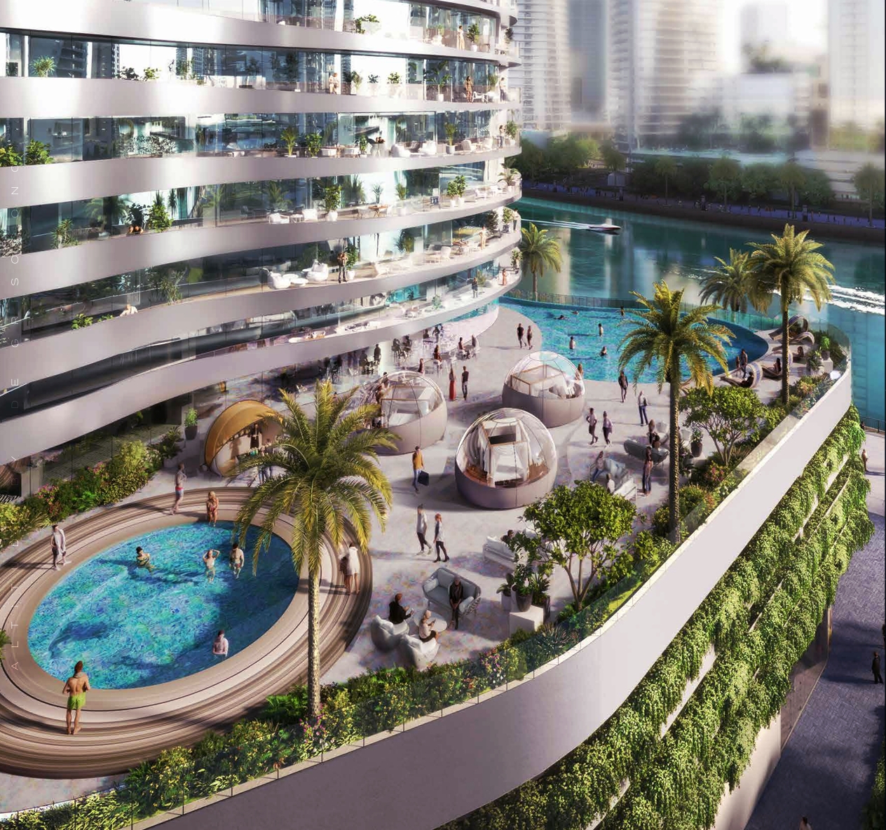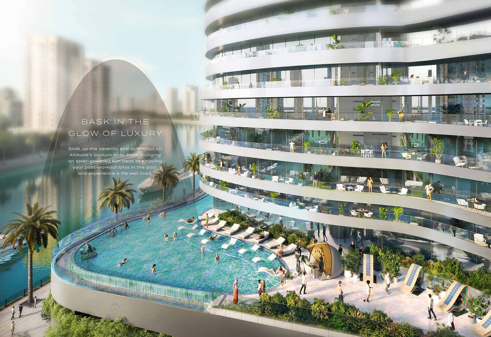 Apartments for sale at Altitude de GRISOGONO are replete with world-class amenities and facilities. Residents can enjoy leisure design podium amenities, including unique UFO Spa and Relaxation Pods, a gymnasium, an infinity pool, children's play areas, and a variety of dining and retail outlets. The development also features a garden, a basketball court, a healthcare center, and an observatory deck. For fitness enthusiasts, there are aqua exercise facilities, a gymnasium, outdoor gym, jogging trails, and tennis courts.The architecture and design of Altitude de GRISOGONO apartments for sale at Business Bay are inspired by the elements of outer space, creating a unique and modern aesthetic. The interiors are thoughtfully designed to maximize comfort and elegance, with features like rounded balconies offering views of the Dubai Water Canal or the Burj Khalifa. Duplex owners enjoy added luxuries such as walk-in closets in the master bedroom, maid's rooms, and private swimming pools on their balconies.