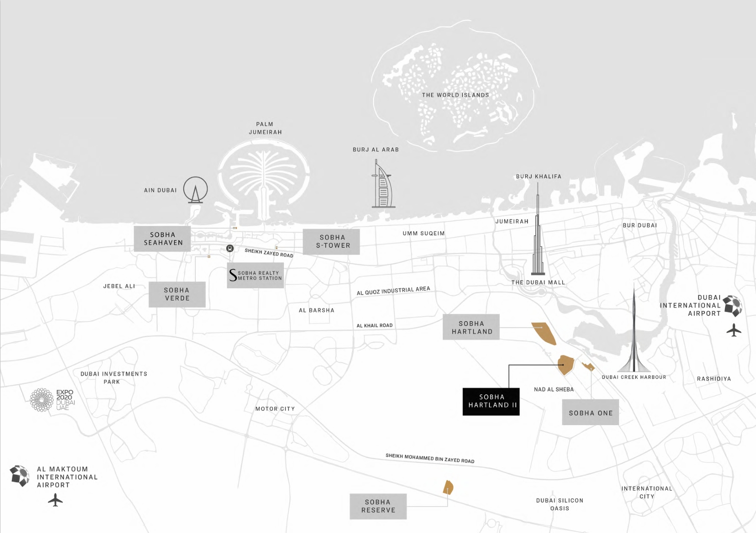 Discover the epitome of luxurious living with the latest venture 310 Riverside Crescent at Sobha Hartland 2 offering luxury 1, 1.5, and 2-bedroom waterfront apartments. This exquisite high-rise development, brought to you by the renowned Sobha Group, offers high-rise architecture that boasts a distinctive diamond-shaped design, capturing not only the eye but also maximising natural light and panoramic views.Residents enjoy a resort-like living experience with direct access to a boardwalk, lagoon, and beach, providing a tranquil escape amidst crafted excellence. The development is strategically located, offering easy access to key landmarks in Dubai, including the Dubai Creek, Design District, and Downtown Dubai. This ensures that residents are at the centre of the action.This architectural masterpiece is more than just a visual delight; it adds a touch of elegance to Dubai's skyline, making it a symbol of luxury. Residents can relish exclusive views of the golf course, serene lagoons, and captivating panoramas. The development also boasts views of lagoons and the prestigious racecourse. These vistas make every day feel like a vacation, with a constant reminder of Dubai's beauty.Live Connected. Live Central.Riverside Crescent is a stunning residential development comprising six elegant towers, thoughtfully positioned around a beautifully curated amenity space, featuring expansive open areas and lush landscaping. This exceptional collection of one- to three-bedroom residences offers residents breathtaking views of the surrounding community. Enjoy unobstructed vistas of the serene villa community, with the iconic Meydan Racecourse nearby, all framed by the dynamic Dubai skyline.LIFE IS A COLLECTION OF EXPERIENCES310 Riverside Crescent is a truly unique neighbourhood, seamlessly blending modern luxury with natural beauty. Set around pristine tower amenities and vibrant communal amenities, alongside a serene blue lagoon, this exceptional development offers expansive open spaces and lush landscaping. Residents can enjoy 1- to 2.5-bedroom apartments, each with stunning views of the iconic Dubai skyline.
