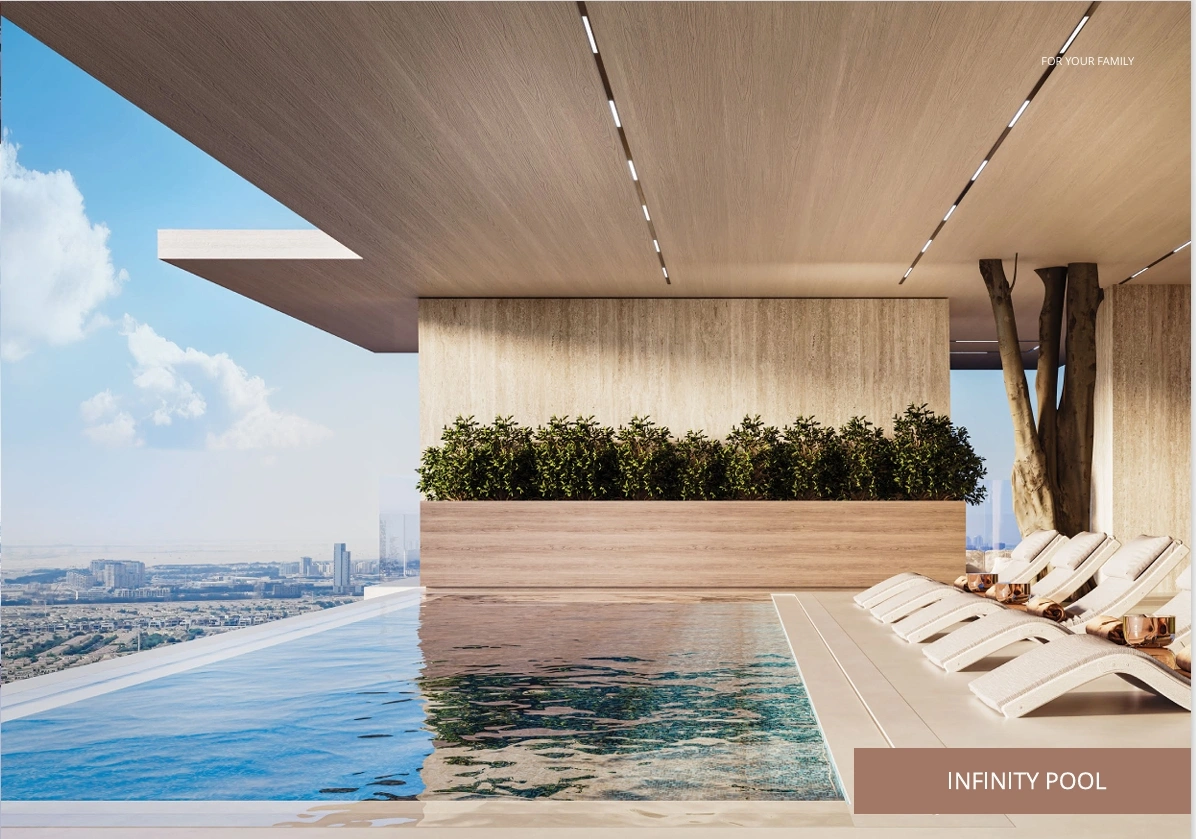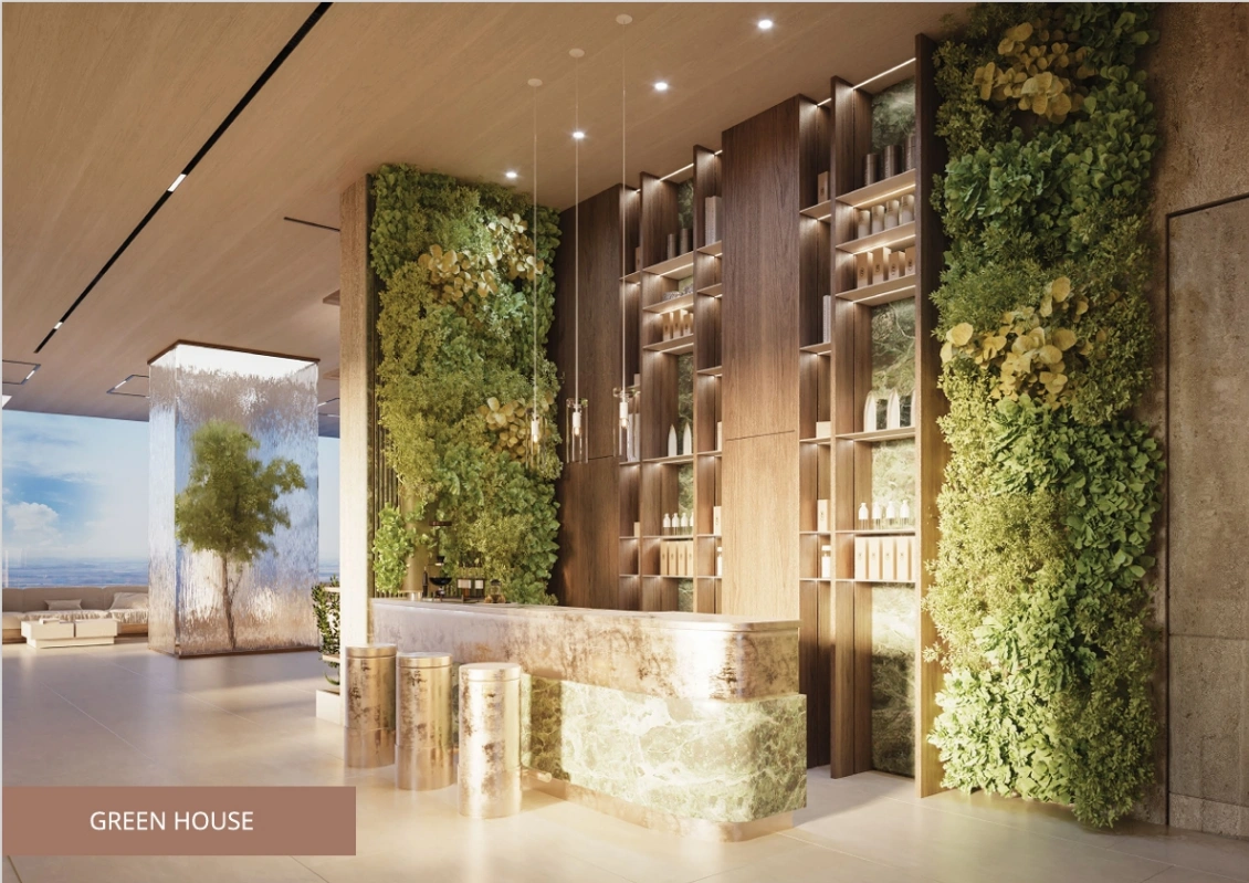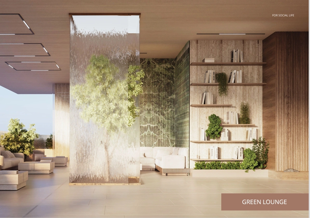 Rising above its surroundings, this development features a grand structure, with five podium parking levels and 27 residential floors. It effortlessly merges innovative technology with sustainable living, creating a space where the future of living meets environmental responsibility. Boasting a visually captivating façade and expansive panoramic views, the tower is designed with carefully selected amenities that create a living experience blending both sophisticated luxury and innovative design elements.Meticulously designed to provide an exquisite balance of luxury, comfort, and practicality, each residence is equipped with fully automated features, state-of-the-art AI smart home systems, and premium furnishings that elevate everyday living with effortless convenience.With an eye on the future of urban living, this tower integrates state-of-the-art wellness features like purified air systems and mineralized drinking water, creating a living space where health and sustainability take center stage. With intelligent robot delivery services, secure facial recognition access, and complete control of home settings through a single mobile app, residents are guaranteed a living experience that is both seamless and secure. Residents can indulge in a range of luxury and recreational amenities, from infinity pools and outdoor theaters to serene yoga spaces and a unique hydroponic greenhouse café on the two leisure floors.