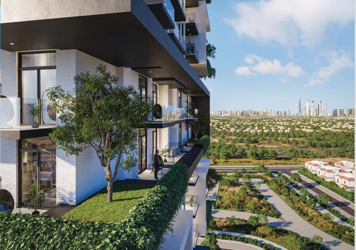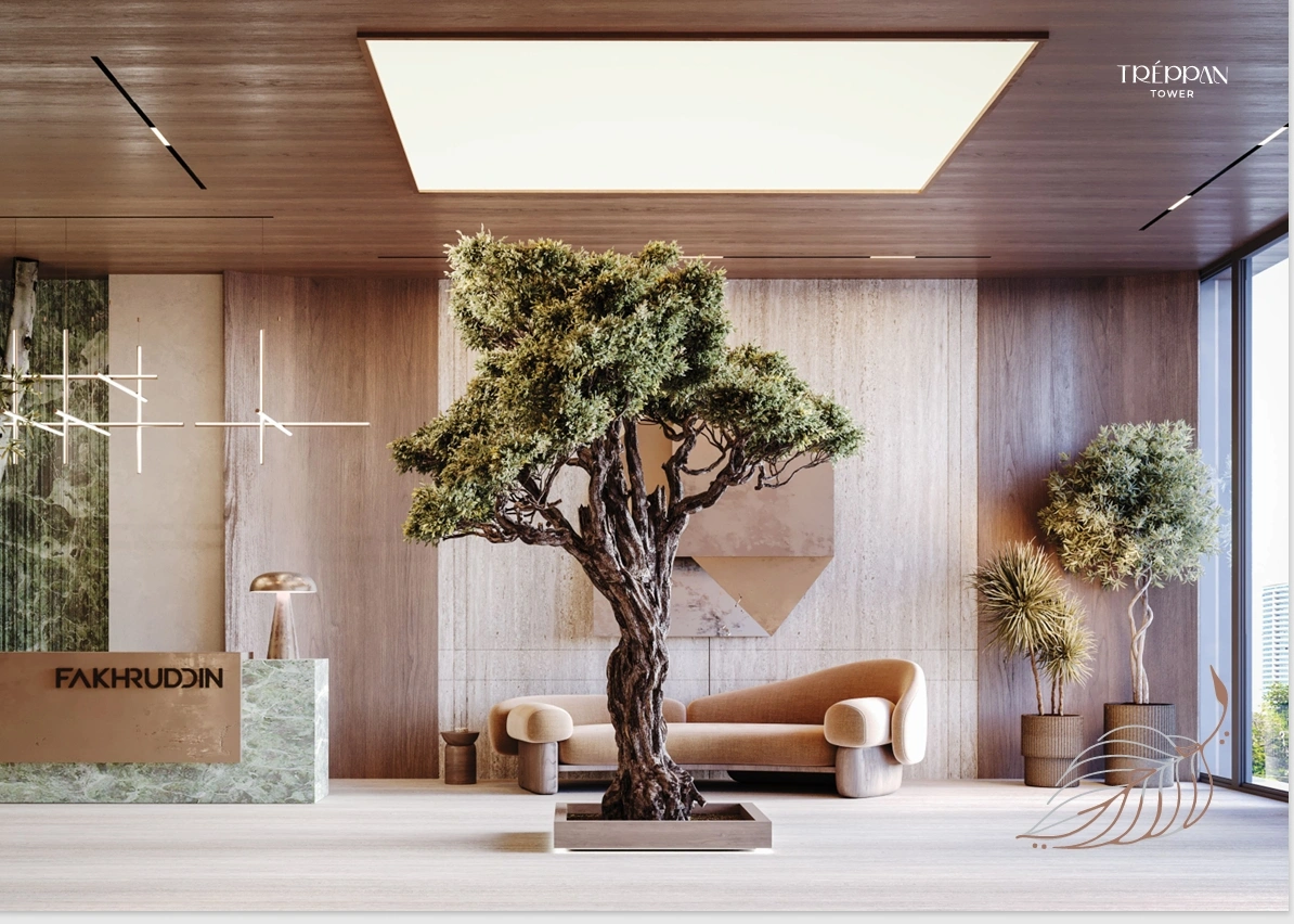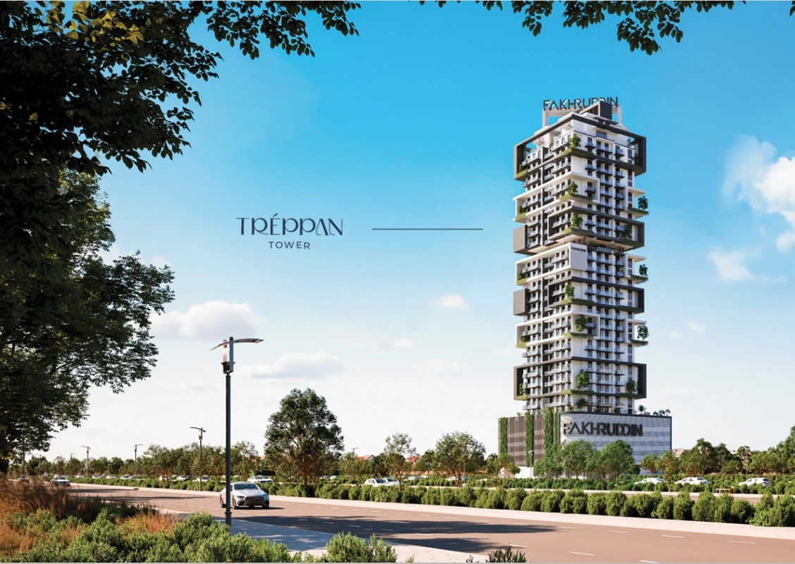 Treppan Tower at Jumeirah Village Triangle (JVT) emerges as a masterpiece of modern architecture by Fakhruddin Properties lined with 1, 2 bedroom apartments as well as 3 bedroom duplexes and sky villas. This remarkable development features a towering configuration of ground plus 5 podium parking levels and 27 residential floors, seamlessly blending cutting-edge technology with sustainable living.With its striking façade, panoramic views, and thoughtfully curated amenities, the tower offers an unparalleled living experience where sophistication meets innovation. Each residence is meticulously designed, providing a harmonious balance between luxury, comfort, and functionality. The interiors boast fully automated features, AI-enabled smart home systems, and premium furnishings that ensure convenience at every turn.The tower is designed to redefine urban living, by incorporating state-of-the-art wellness features, from pure indoor air quality systems to centralized mineralized drinking water, emphasizing health and sustainability. Residents can enjoy intelligent robot delivery systems, facial recognition access, and master control of their home environment through a single mobile app, making life seamless and secure. The two leisure floors exemplify luxury and recreation, offering a plethora of amenities, including infinity pools, outdoor theaters, yoga spaces, a hydroponic greenhouse café, and much more. With its unique blend of technology, sustainability, and wellness, the façade stands as a beacon of future-ready living in Dubai.