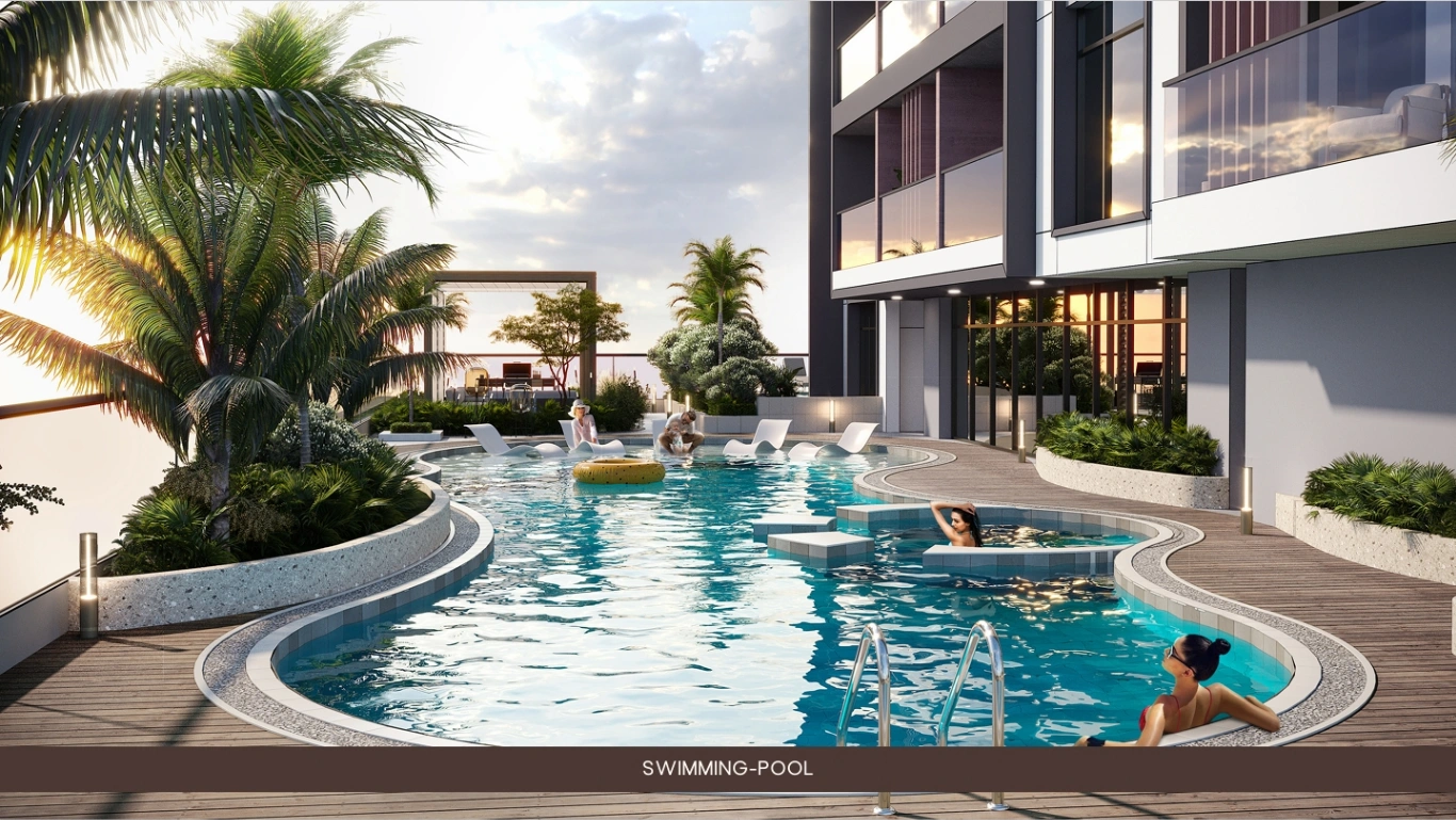 Q Gardens Aliya is a new premium residential tower rising 27 floors and offering around 400 stylish residences, including luxury studios and spacious 1-3 bedroom apartments. Each residence features floor-to-ceiling windows, high ceilings, and a neutral palette enhanced by premium European finishes. Kitchens are equipped with Italian appliances, Michelangelo marble countertops, Bertolotto doors, and Grohe or Villeroy & Boch sanitaryware, combining luxury aesthetics with everyday functionality.Residents enjoy an impressive range of amenities, including a rooftop infinity pool with panoramic views, a heated swimming pool, and wellness facilities such as a gym, cycling studio, sauna, steam room, jacuzzi, and squash court. Additional features include a cinema room, arcade, business lounge, co-working spaces with an espresso bar, landscaped podium gardens, indoor and outdoor children’s play areas, BBQ zones, and a jogging track. A grand lobby, 24/7 concierge service, and high-speed elevators further enhance the living experience.