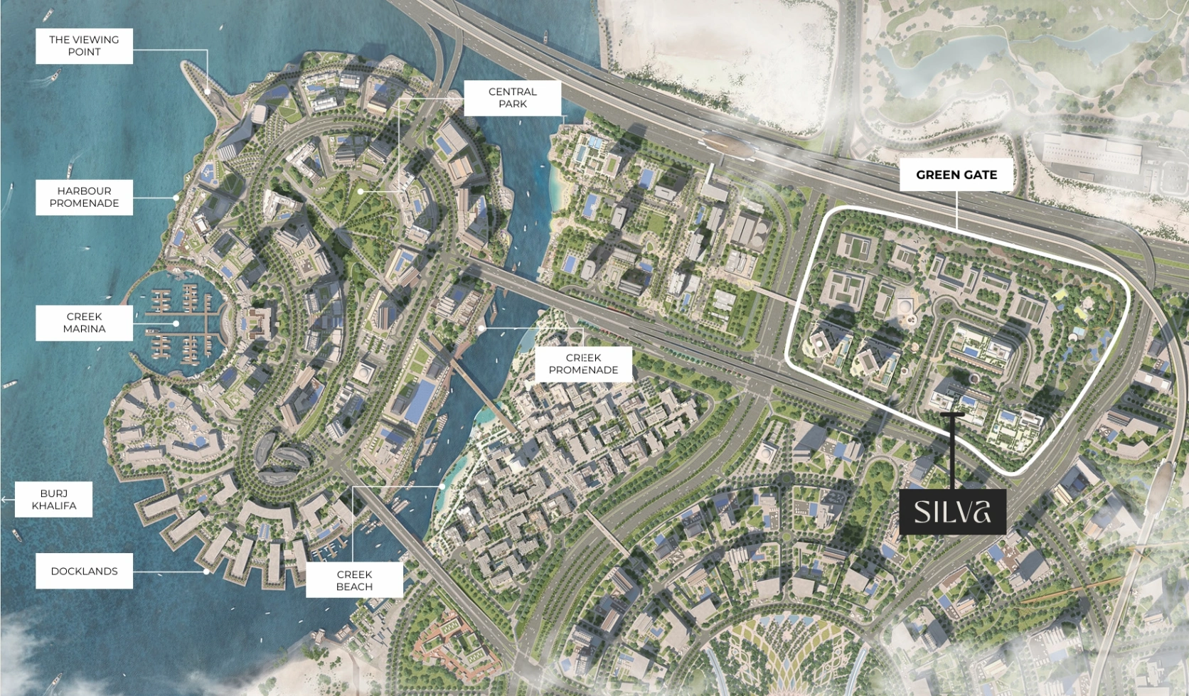 Silva by Emaar Properties is located in the heart of one of Dubai's most promising and fastest growing neighbourhoods, Dubai Creek Harbour. It is a large-scale residential community that seamlessly blends the natural environment, advanced infrastructure and modern architecture. Designed for those seeking a balance between the comfort of the metropolis and the solitude of nature, it offers a variety of housing formats, from elegant apartments to spacious townhouses. Emaar Silva at Dubai Creek Harbour is a meticulously designed space where attention to detail is felt at every stage, from material selection to interior organisation. The living spaces are designed in a calm colour palette using natural wood and stone textures. Panoramic windows fill the rooms with light and offer views of the park, water canals and the architectural landscape of the city. Spacious terraces and balconies become a natural extension of the interior space, creating a feeling of cosiness and openness.A wide range of infrastructural solutions for everyday life and recreation are provided on the territory of the development. The centrepiece is the Green Gate public park — a green space with jogging paths, sports fields, playgrounds, climbing wall, table tennis and secluded lounges for relaxation. Residents of these properties in Dubai will be able to enjoy swimming pools, badminton and football courts, and barbecue areas. The presence of educational institutions nearby increases interest in the project from families with children, for whom a combination of safety, infrastructure and a comfortable living environment is important.