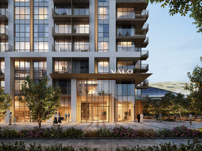 VALO is a premium residential complex by Emaar Properties in Creek Beach, Dubai Creek Harbour. It features a range of 1-3 bedroom apartments and just six 3-bedroom townhouses. In total, there are 285 residences available.The property sizes range from 752 sq. ft to 2,048 sq. ft. The floor plans include a laundry room and balconies, while the 3-bedroom units additionally come with maid’s rooms.The complex is distinguished by innovative eco-friendly technologies that are sure to provide comfort while reducing the impact on the environment. Therefore, the key features of the project encompass water conservation, sun protection, green integration, smart lighting, waste management, energy efficiency, insulation and eco-friendly parking.Residents of VALO will be granted access to multiple leisure and recreation amenities. These include a pool area, indoor and outdoor gyms, a multipurpose lawn area, a children’s pool and play area, a social leisure podium, a multifunctional room, a BBQ & picnic area, a yoga area and a community garden.VALO is strategically located near Ras Al Khor Road, offering excellent connectivity to different parts of the emirate. Furthermore, residents will enjoy the convenience of being just a short drive away from Dubai International Airport, Dubai Festival City and Business Bay, all reachable in around 15 minutes.Moreover, for those who opt to use public transportation, the Dubai Creek Harbour Marine Transport Station is conveniently situated within walking distance from the development. An added perk is that VALO will soon be in close proximity to a metro station, as one is currently being built nearby.Within a 25-minute walk, residents will have access to a wide array of facilities and amenities that ensure all their needs are met. Some of these include Geant Express, Dubai Creek Residences, Dubai Creek Life Pharmacy, Creek Marina Yacht Club and various dining options such as Mondoux, The Courtyard, Next Door Kitchen and Amici Miei Dubai Creek Harbour.Furthermore, there are numerous reputable schools and clinics in the vicinity of VALO, including Deira International School, Universal American School, Nad Al Hammar Health Center and Al Rashidiya Medical Fitness Center, all conveniently located within a 15-minute drive from the complex.