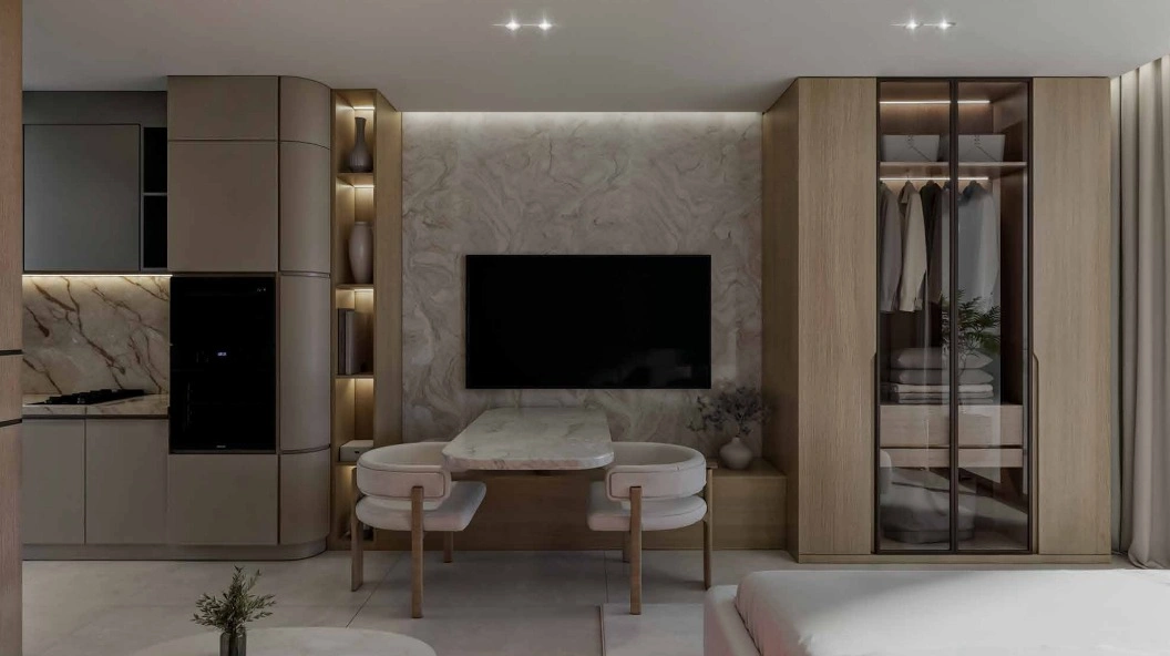 Holm One Residence stands out as a modern, design-driven residential development created by Holm Developments, combining Scandinavian-inspired simplicity with contemporary urban elegance. Architecturally, the building features clean geometry, balanced proportions, and a sleek façade finished with a blend of glass, neutral materials, and soft lighting elements that give it a refined, upscale presence within Jumeirah Garden City. The exterior design emphasises both sophistication and functionality, incorporating large windows to maximise natural light, landscaped podium levels, and a well-structured layout that enhances aesthetics while supporting privacy and comfort for residents. Inside, Holm One is fully furnished and crafted with a minimalist yet premium interior approach—open layouts, warm tones, space-efficient planning, and built-in smart-home systems create an environment that feels airy, modern, and ready to move in. High-quality materials, integrated kitchen appliances, stylish bathrooms, and elegant finishes elevate the living experience, making each unit feel both luxurious and practical. The project’s true uniqueness lies in its combination of fully furnished residences, smart-home integrations, efficient unit sizes, and hotel-style amenities, all set in a prime, rapidly developing central Dubai location—offering residents a lifestyle that is convenient, modern, and effortlessly stylish.