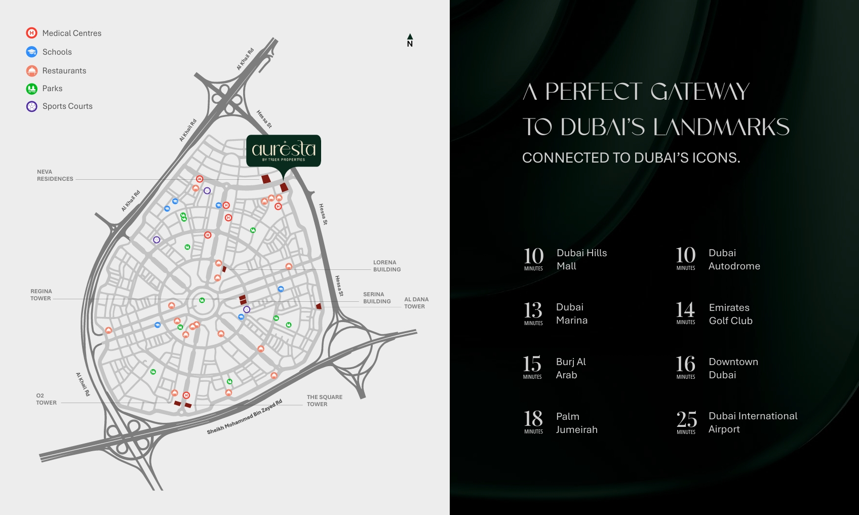Auresta Tower rises gracefully above Dubai’s skyline, standing as more than just a residential building—it is a symbol of aspiration, achievement, and architectural excellence.Developed by the visionary minds at Tiger Properties, this iconic 63-story structure is a bold statement of modern luxury and innovation, located in the heart of Jumeirah Village Circle—one of Dubai’s most vibrant communities.Aurestais not merely a place to live, but a complete lifestyle experience that blends contemporary design with smart living, offering a range of world-class amenities including an outdoor swimming pool, a fully equipped fitness center, a dedicated kids’ pool and play area, sauna and steam rooms, sports courts, jogging and cycling tracks, yoga and meditation decks, lush garden zones, an elegant indoor lounge, 24/7 surveillance, and BBQ areas—creating a daily living experience that truly exceeds expectations.The Auresta Tower complex features swimming pools, a jacuzzi, a gym, a sauna, a steam room, yoga and meditation areas, running and cycling tracks, tennis and basketball courts, a children's playground, lounges and barbecue areas. The tower also has commercial and office space, a reception desk, waiting areas and a 7-level covered car park.