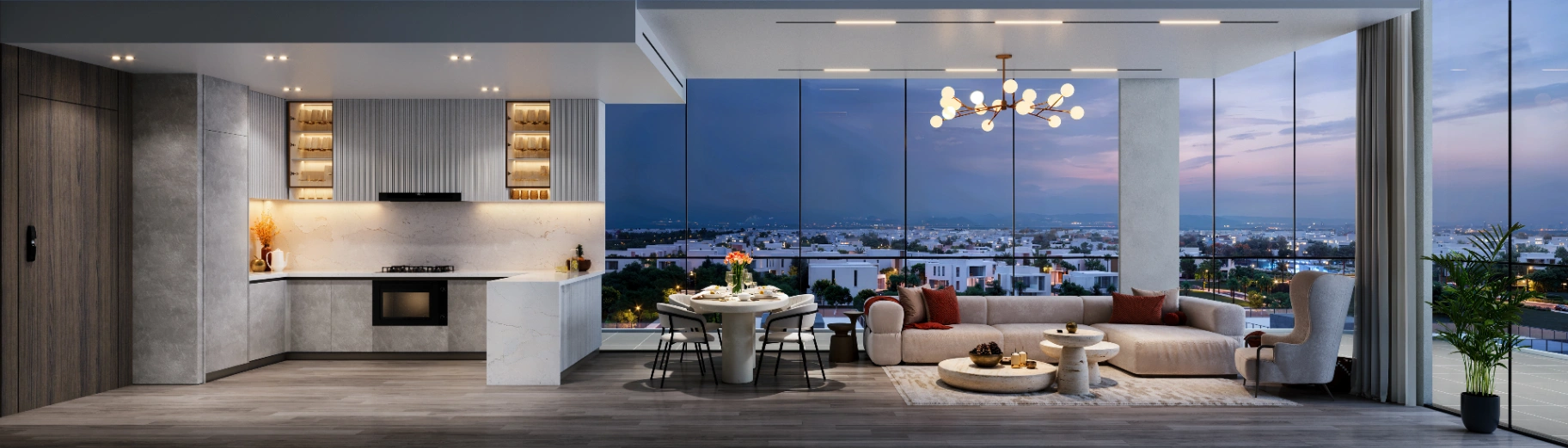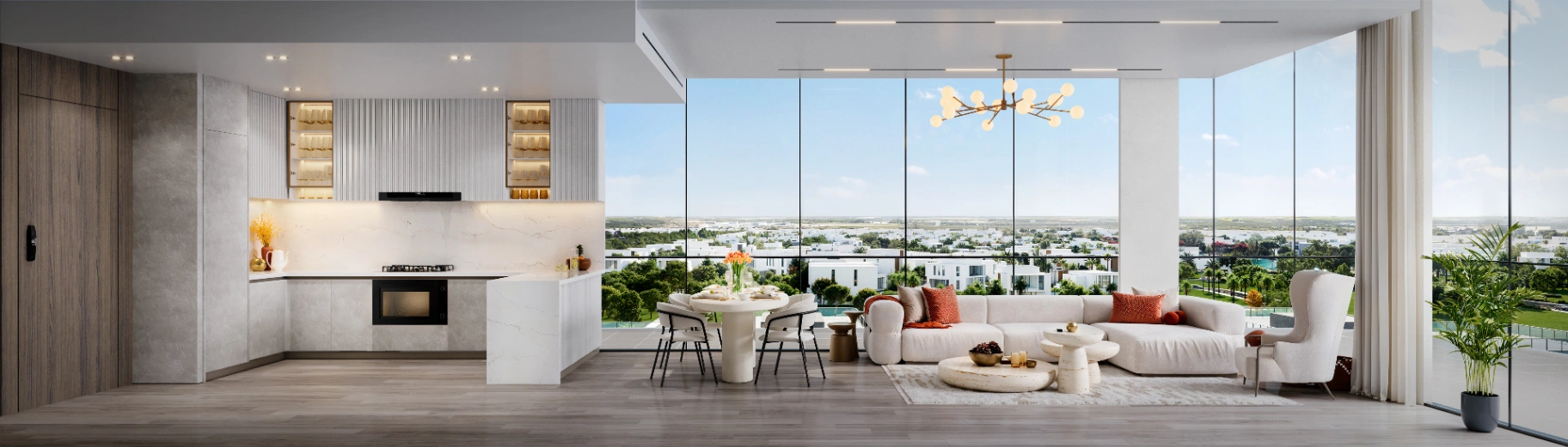 Gate Eleven Residences by Amwaj Development is a contemporary residential project situated in Meydan District 11, Dubai. The development emphasizes modern architecture, sustainable living, and luxury interiors. The kitchen in Gate Eleven Residences is designed to blend functionality with elegance. Each unit is equipped with built-in kitchen appliances from the Italian brand Elba, including a gas hob with hood, oven, microwave, dishwasher, fridge, and freezer. The interiors boast premium materials with warm, welcoming color schemes, elevating the sophisticated atmosphere throughout. The development also includes smart home systems, allowing residents to control various aspects of their homes for convenience and efficiency. The exterior design of Gate Eleven Residences reflects a commitment to modernity and sustainability. The use of glass and stone in the building's facade contributes to a sleek and contemporary look. The project integrates green spaces and landscaped gardens, promoting a harmonious blend of urban living with nature. The development offers a blend of modern design, luxury interiors, and sustainable living, making it a notable development in Dubai's real estate landscape.