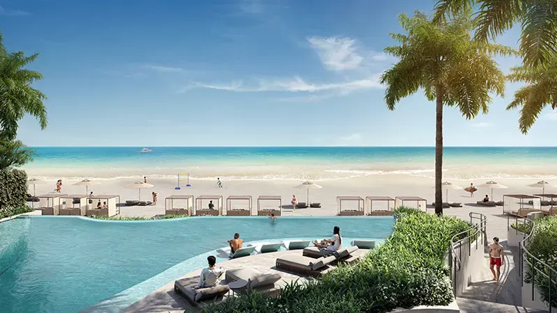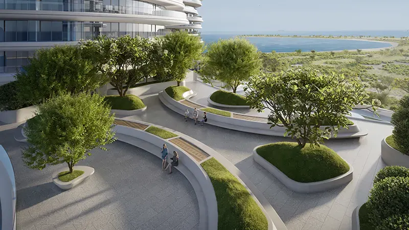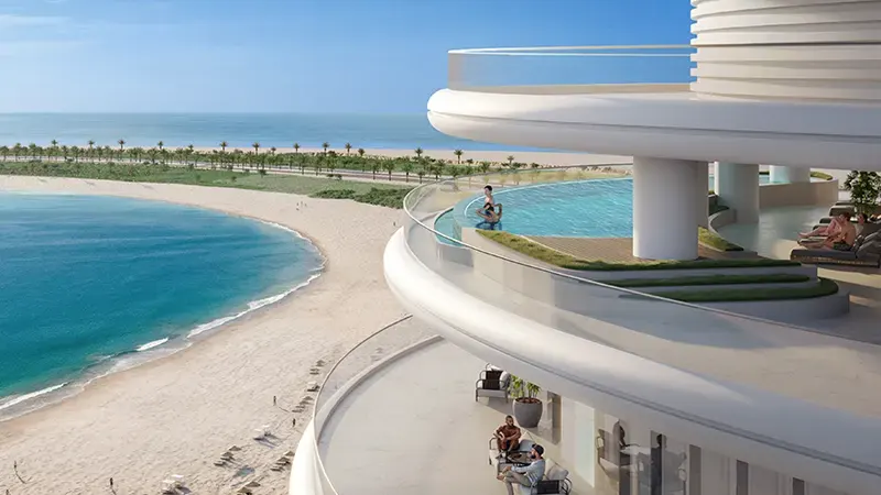 The architectural design emphasizes fluidity, from the towers' curving facades to the elevated walkways that connect them, creating a seamless flow between luxury residences and shared spaces. This continuity extends to the expansive podium level, which hosts a carefully curated selection of premium retail and dining establishments. With direct beach access and a lush landscaped environment, offers residents and visitors an immersive experience where modern luxury meets serene coastal living.The development and designer Elie Saab have collaborated to ensure that every aspect reflects a commitment to quality and refinement. Interiors are crafted with a sophisticated blend of rich textures and modern design elements that highlight the signature style, exuding an atmosphere of timeless elegance and comfort. This attention to detail enhances the visual appeal of the interiors and allows residents to connect with the scenic surroundings, offering a sense of tranquility and exclusivity.The amenities cater to all aspects of well-being, leisure, and productivity, ensuring a balanced lifestyle for its residents. On the ground level, families have access to a dedicated kids' club, outdoor play areas, a spa, gym, and a chauffeur’s lounge, making it a destination that caters to all ages. Additionally, spaces like serenity park and the link garden on the podium level bring elements of nature closer to residents, offering tranquil environments for relaxation amidst the architectural splendour. For those seeking elevated amenities, the Level 18 Sky Lounge, Sky Gym, and Sky Pool provide breathtaking views and a sense of exclusivity that only comes with such a prestigious address. These facilities encourage a community-oriented lifestyle, where residents can socialize, work, or simply unwind in surroundings designed for comfort and elegance.Key Highlights:
