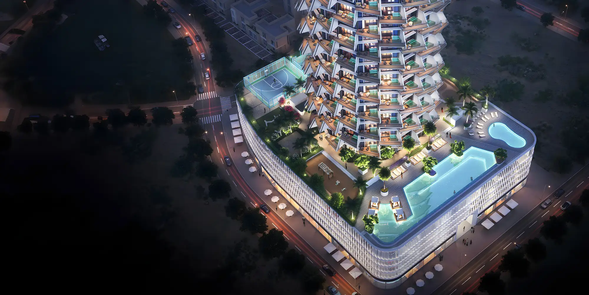 Binghatti Grove at JVC is the new residential Icon, the emblem of luxury and tranquillity developed by Binghatti Developers with premium 1, 2 and 3-bedroom apartments in Dubai. The development stands as a testimony to Biophilic design, embracing nature’s calming influence while embedding it into every corner of contemporary life. Rising high in the sky with 42 residential floors of exquisitely designed residences, with an additional floor dedicated entirely to amenities. The sleek, sustainable facades of the building are interwoven with landscaped greenery, allowing natural light to filter through, casting soft, soothing shadows that add a layer of warmth and tranquillity to your home.At the heart of Jumeirah Village Circle, it offers a thriving city address in Dubai offering seamless connectivity experience to enjoy the life. With its location providing easy access to major routes like Al Khail Road, the development places you at the crossroads of Dubai’s urban energy and its natural landscapes. Whether you're commuting to the bustling Downtown Dubai or taking a leisurely stroll to nearby parks and recreational areas, it ensures that every experience is just a short journey away.With sustainability at its core, the facade stands as a landmark of sustainable elegance, incorporating the principles of mindful living into its very core. The use of sustainable materials, including Cipollino marble, bronze glass, and eco-friendly wood finishes, highlights the commitment to reducing its environmental footprint while delivering spaces of refined beauty. The project’s biophilic architecture not only enhances the aesthetic value but also promotes energy efficiency and a healthier living environment. Each element, from the design of the façade to the materials used for interior finishes, has been carefully selected to minimize environmental impact, ensuring that it serves as a model for sustainable urban development in Dubai.With premium selection of 388 thoughtfully crafted residences, residents are offered with ample options to choose from. Each unit is designed with meticulous attention to detail, making use of natural materials to enhance the living experience. The open-plan layouts and expansive windows bring an abundance of natural light into every corner of your home, cultivating an atmosphere of calm and connection. From the soft hues of champagne marble to the elegance of bronze glass, the interiors echo nature’s serenity, while offering the sophistication of contemporary living.Elevate your everyday lifestyle with luxurious amenities designed to cater to daily needs. Enjoy access to serene pool deck with separate area for both adults and kids, ensures relaxation and recreation for all ages. The outdoor yoga and fitness areas bring nature into your workout routine, designed to foster a sense of well-being. For those who enjoy sports, the courts provide a perfect escape for physical activities and friendly competition.