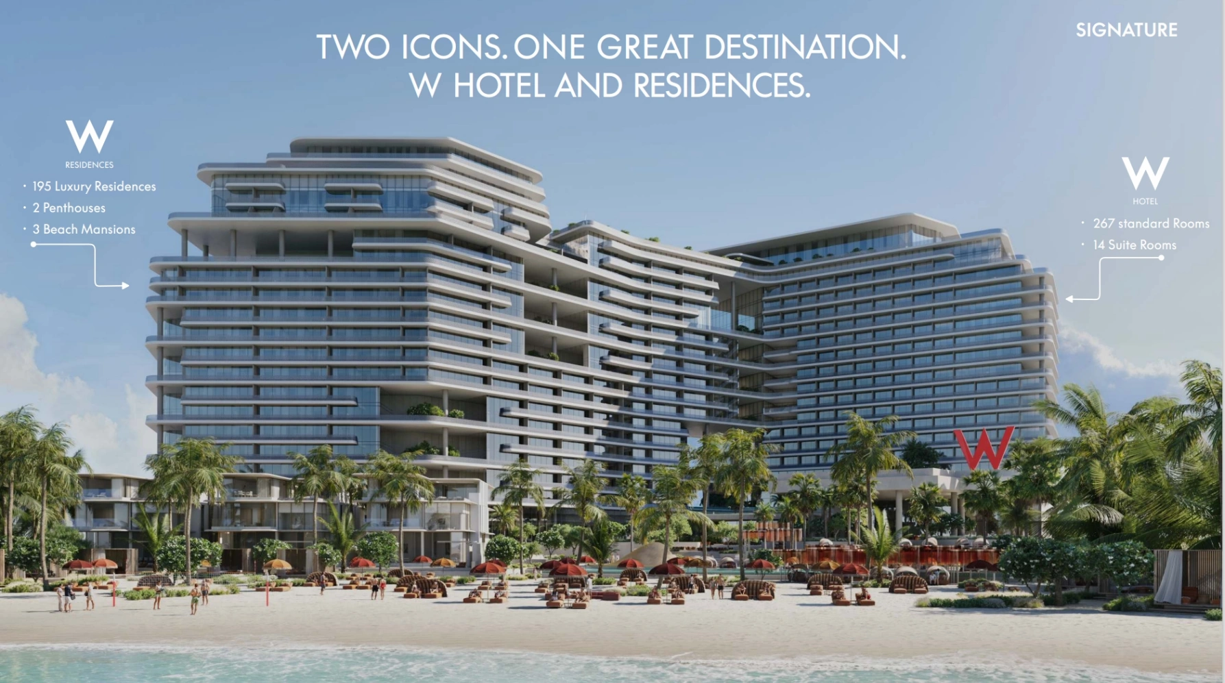 The W Hotels & Residences on Al Marjan Islands in the emirate of Ras Al Khaimah is a joint initiative between Dalands Holding and Marriott International — the first branded residential offering under the W Hotels brand on the coast overlooking the future Wynn Casino. The development is located on the west side of Al Marjan Island, one of the most promising investment destinations in the UAE, offering all the necessary amenities, picturesque beaches and excellent transport links.W Hotels & Residences Al Marjan Islands offers a collection of fully furnished luxury properties. The development features 1- and 2-bedroom apartments, 2- and 3-bedroom duplexes, and a unique 5-bedroom Beach Mansion with direct beach access. All residences are decorated in the W brand style, featuring bright, expressive design, innovative layouts and natural materials in the finishes.W Hotels & Residences Al Marjan Islands by Dalands is equipped with everything you need for a comfortable stay: a WET terrace with a panoramic pool, a W Lounge, a signature AWAY spa, a FIT fitness centre, 24-hour security, underground parking, direct access to the beach, children's playgrounds, as well as three concept restaurants and boutiques. Owners of this property on Al Marjan Islands receive exclusive platinum membership in the W Hotels chain worldwide.Al Marjan Island is an artificial archipelago that has become a new attraction in Ras Al Khaimah. There are already eight hotels on the island, including Hilton, Rixos, and DoubleTree, and Wynn Al Marjan Island, the first resort casino in the UAE, is expected to open in 2027. This property is just a few minutes' walk from W Hotels & Residences, which significantly increases the rental appeal of the property.