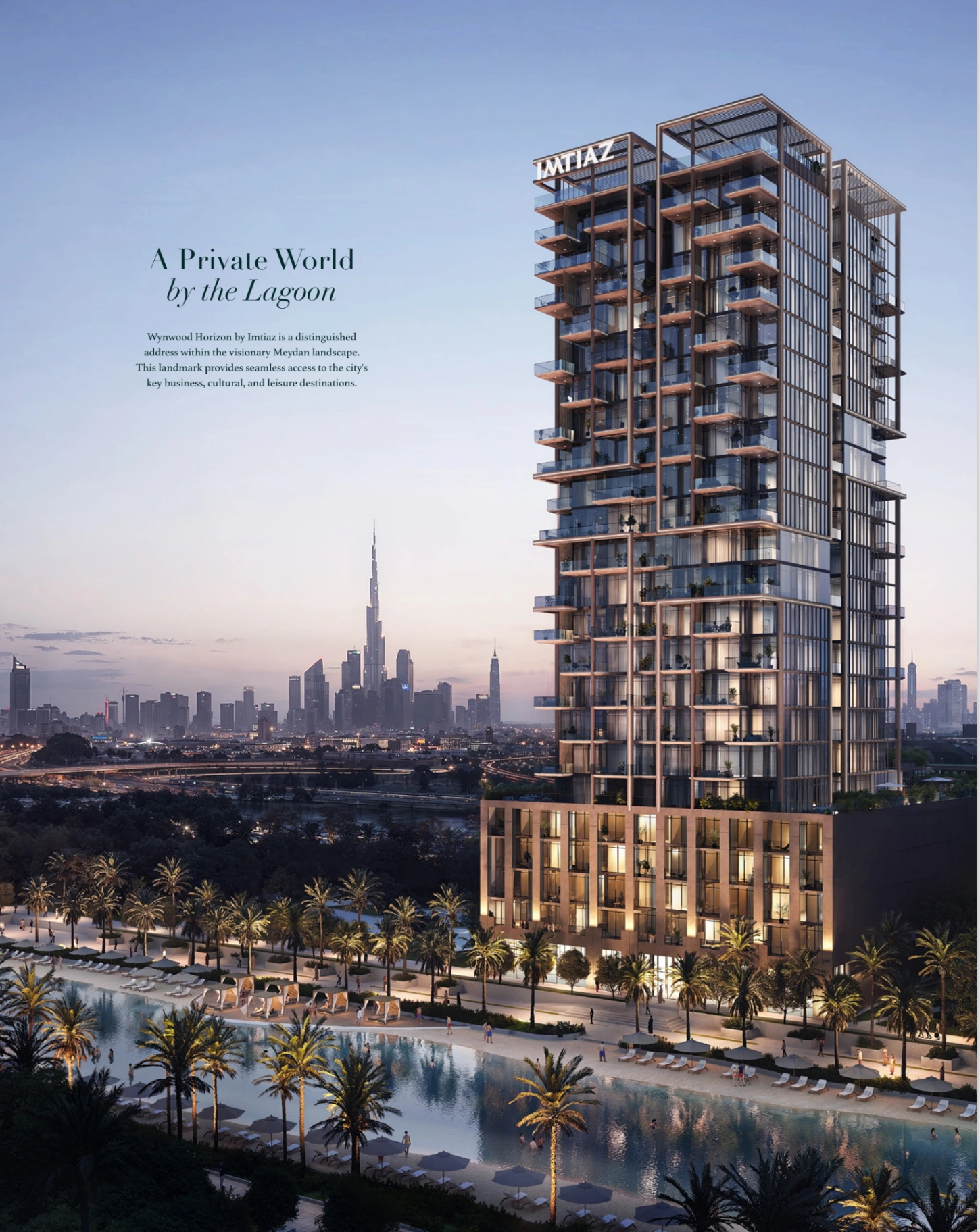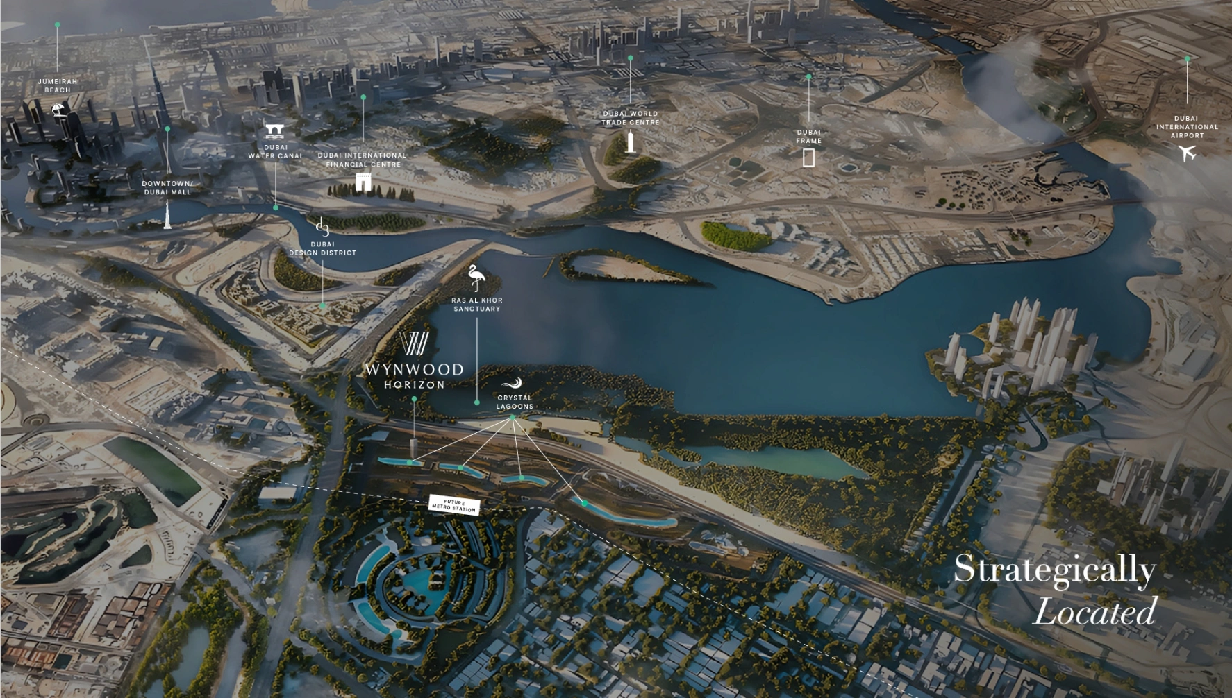 Wynwood Horizon is an intimate project located in the heart of Meydan, overlooking the lagoon. The developer is Imtiaz Developments, one of the most prominent and award-winning players in the property market of Dubai. The address is business-friendly: it is just a few minutes' drive from Downtown and Business Bay, as well as the future Green Line metro station. At the same time, the windows overlook the Ras Al Khor Wildlife Sanctuary with its population of pink flamingos — an exceptional mix of urban dynamism and waterfront tranquillity.Property at Wynwood Horizon by Imtiaz offers a collection of 166 premium 1-3 bedroom apartments. Commercial retail units located on the lower floors of the complex are also available for sale. The premium concept of the Wynwood Horizon at Meydan is emphasised by its well-thought-out internal infrastructure. Residents have access to a club gym, family pool, children's playground, green and water lounge areas, BBQ facilities, yoga lawns and EV charging stations. An obvious advantage of the project is its proximity to Meydan Racecourse with its horse track, museum, 60,000-seat grandstand, restaurant cluster and golf courses. Everything you need is close by — without unnecessary pretentiousness, but with a distinctive character.Another great thing about Wynwood Horizon at Meydan is its location. Burj Khalifa and Dubai Mall are a 10-minute drive away, while Business Bay and DXB Airport are 15 minutes away. The prospect of mobility is enhanced by the development of the metro: Meydan is set to extend the Green Line from Dubai Creek through Dubai Creek Harbour and Ras Al Khor towards Academic City, which will improve public transport accessibility.