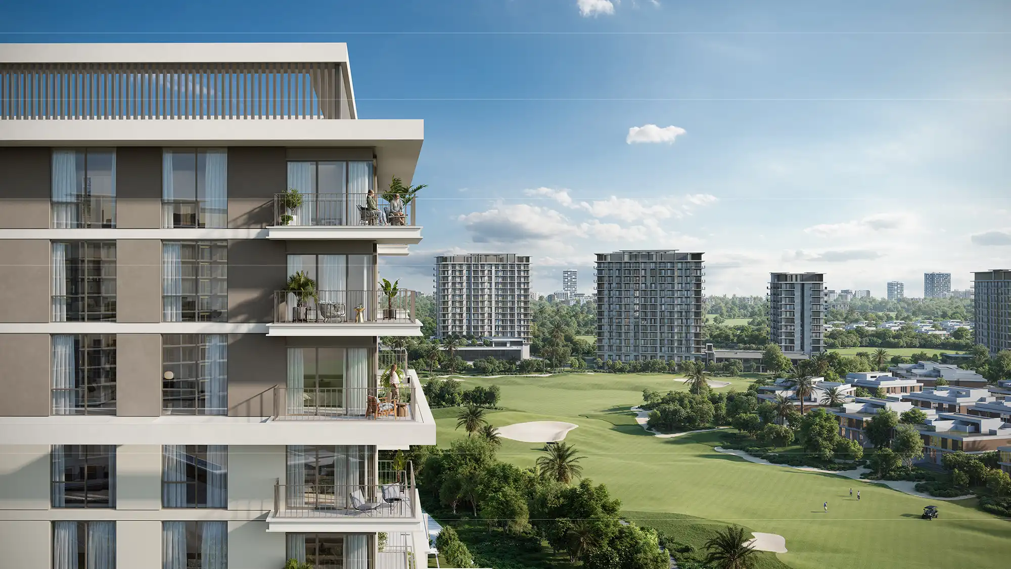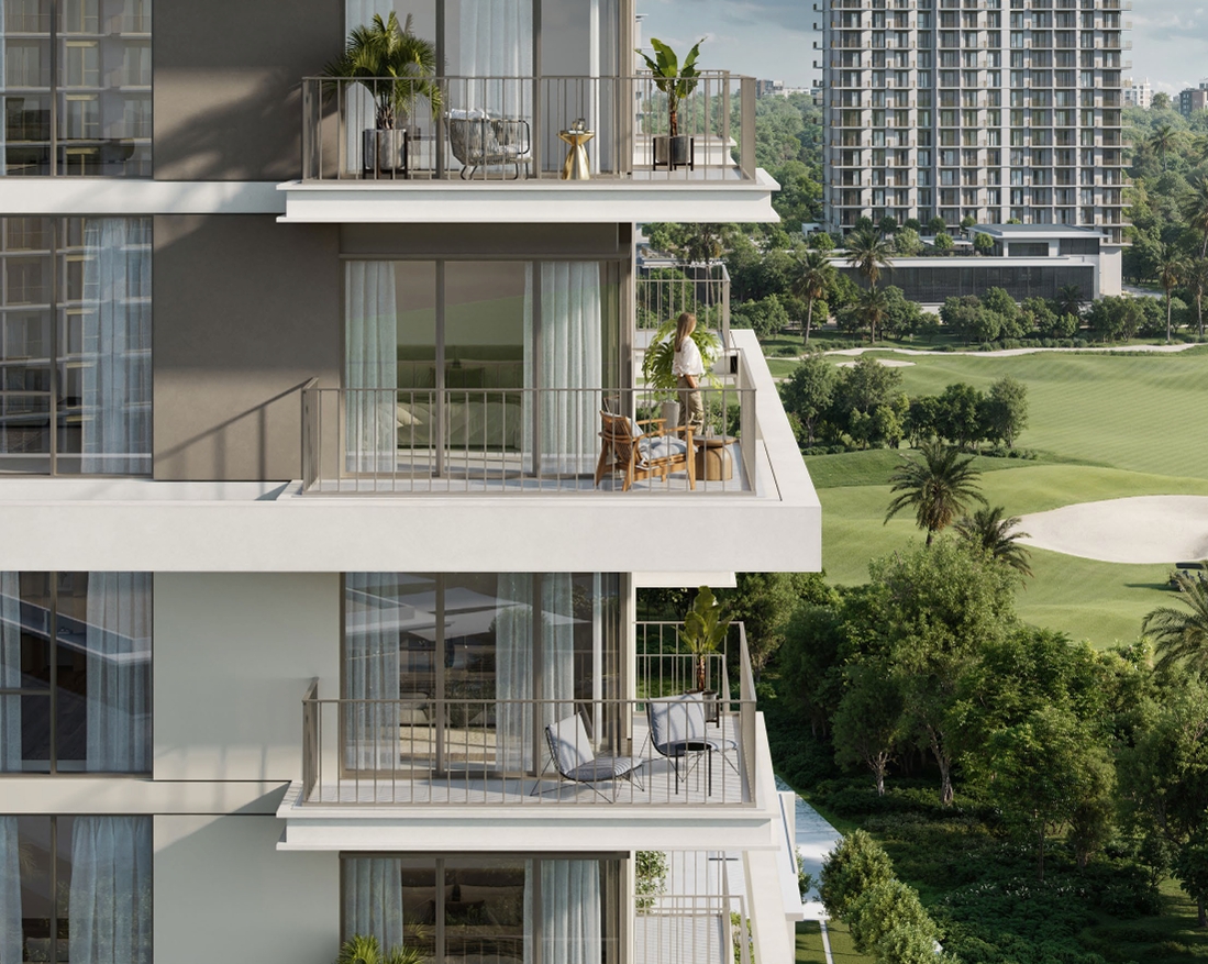 Residents of Emaar Golf Meadow will enjoy a wide range of amenities. There are swimming pools for adults and children, and a play area with water rides for the youngest ones. Sports enthusiasts will appreciate the modern gyms, yoga and padel courts, while outdoor enthusiasts will enjoy bike paths, tennis tables and green walking areas. There is also an event lawn on site, perfect for family picnics, celebrations and get-togethers. There are modern playgrounds for children, and for connoisseurs of cozy evenings, there is a barbecue area where you can spend time with loved ones in a warm atmosphere.The main feature of the neighborhood remains an 18-hole golf course, creating an exclusive lifestyle. There are stores, restaurants, cafes and walking areas within walking distance, making the development convenient for living. Another important advantage of Emaar Golf Meadow is its excellent transportation accessibility. It takes only 5 minutes to get to Dubai Marina, 30 minutes to Downtown Dubai and Burj Khalifa, and Dubai International Airport is 35 minutes away. The development is close to Expo City, business districts and major shopping centers, making it attractive for both residential and investment.Designed to please, the overall architecture plays with space, light, and texture to craft a symbol of modern abode. Its earthy-toned façade and soothing palette create a warm and inviting ambience. Floor-to-ceiling windows welcome golden sunrises, while shadowed alcoves offer pockets of quiet retreat.The interiors are designed to evoke serenity, with earthy tones and natural materials that create a warm, welcoming atmosphere. Rich wood finishes and stone accents bring the outdoors in, while soft, muted colours enhance the sense of calm.