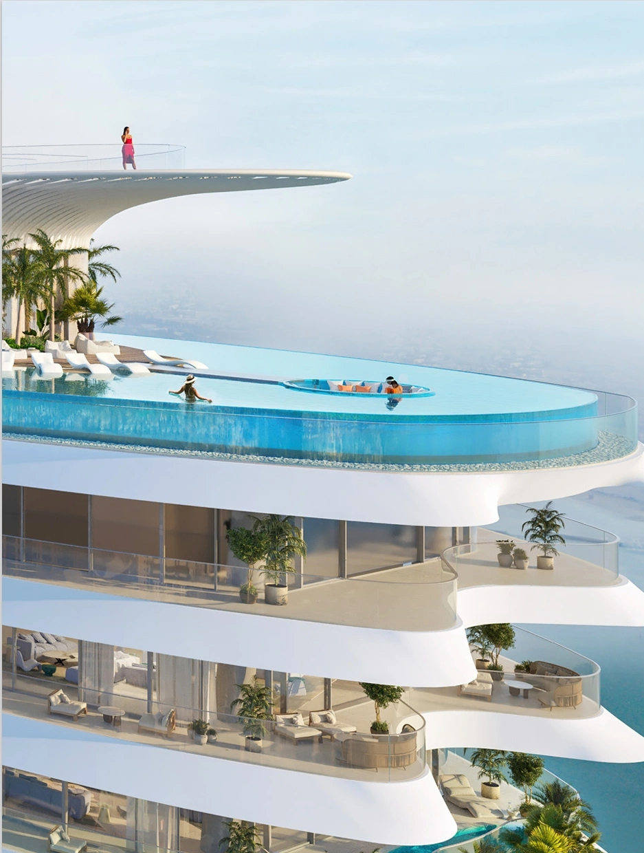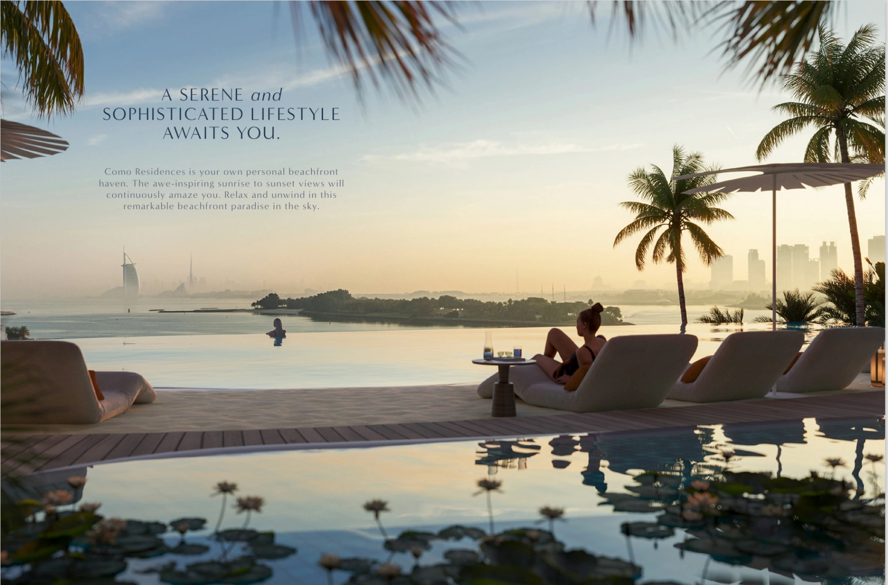 Como Residences at Palm Jumeirah is a brand new high-rise 71-storey development by Nakheel that features exclusive design 2 to 7 bedroom apartments, duplexes and penthouses in Dubai. The iconic design façade takes the shape of an organic seashell, rising towards the sky like an artwork inspired by the gentle waves. The façade comes with its gem on the top with a leisure design infinity edge swimming pool at service, where residents can experience the resort-style lifestyle and enjoy the views of the whole palm area and its neighbourhood.A unique tower of vertical lakes, where you soak up the serene atmosphere and enjoy water activities starting from sunrise to sunset. The exclusive statement is scalped into a series of vertical lakes including a variety of communal pools and private pools made available at service.Experience living in a collection of exceptionally designed spacious residences in the sky, where the high-end interiors come with exclusive features. Each of these luxury residences becomes a haven of peace and tranquillity, above the dazzling blue sea. Feel the romance in the air, where the grandeur of living in one of the exclusive kind is available at your service enjoying the lovely moment of life.This Palm Jumeirah newest landmark allows its residents a truly world-class lifestyle, exploring a series of sweeping terraces and glistering pools and verdant greenery, where the exclusive life connects you to the sea vibes. The magnificent terrace areas of the façade are boasted with views over the iconic skyline, where the extreme design comes with 360-degree panoramic views.