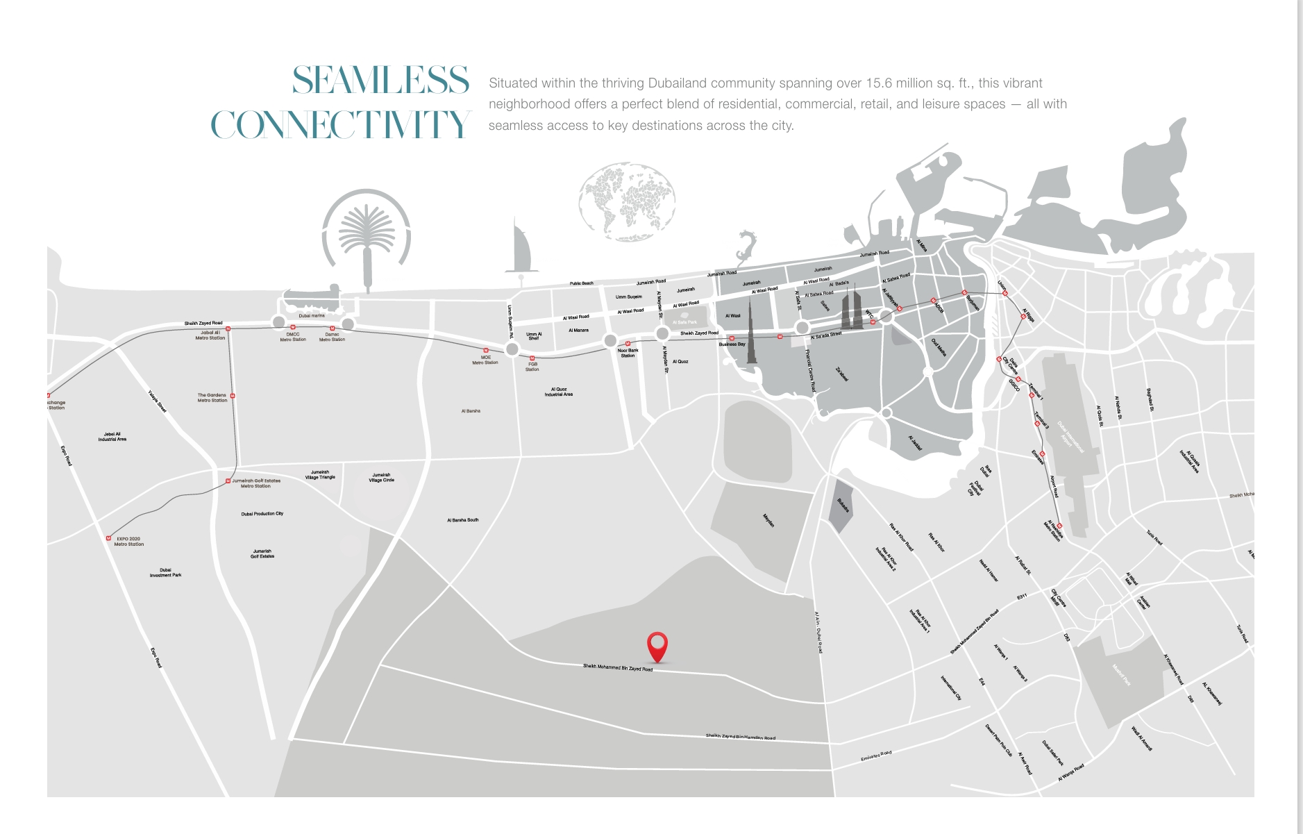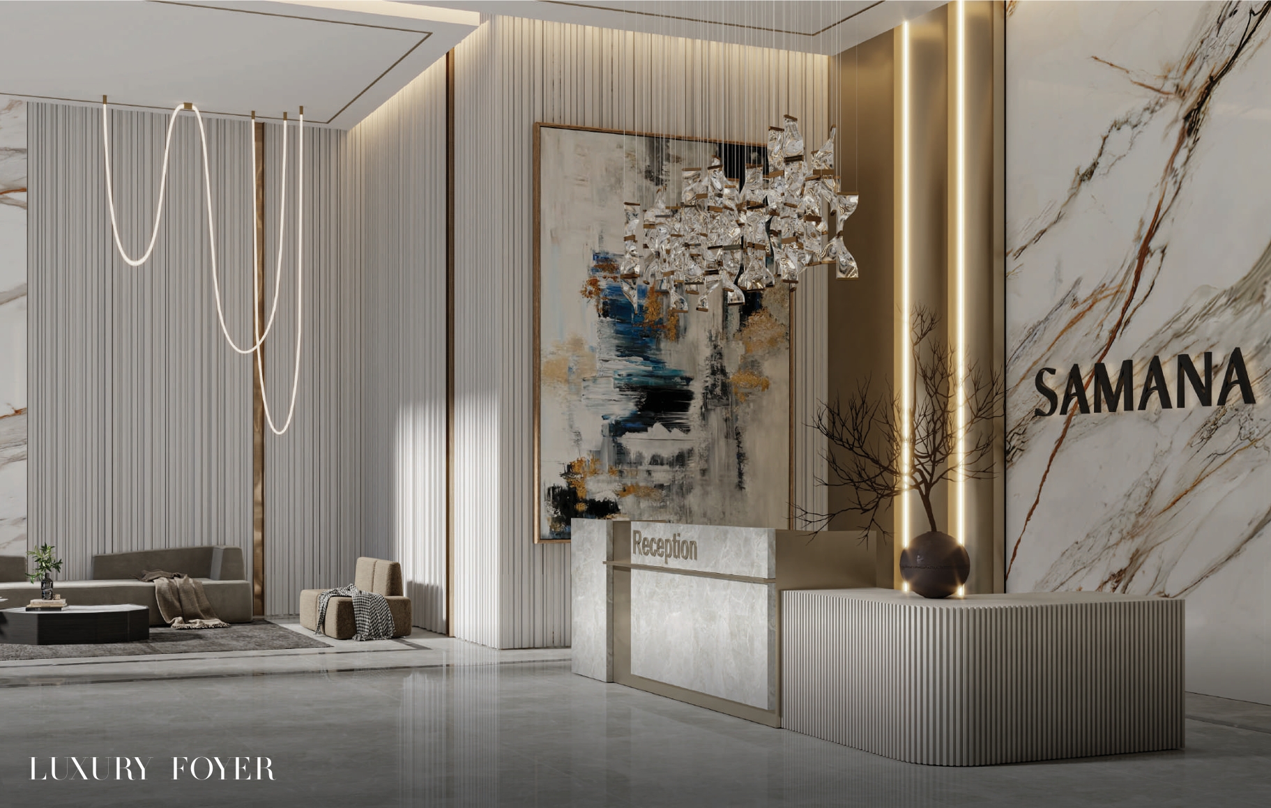 Majan is a quiet but dynamic neighborhood located next to Al Barari. It is well connected, with key highways including Sheikh Mohammed Bin Zayed Road and Al Ain Road nearby, providing quick access to other parts of the city. Cityland Mall, Dubai Miracle Garden and Global Village amusement park are within 10-15 minutes. Downtown Dubai, Burj Khalifa, Dubai Mall and Dubai Intl. Airport can all be reached within 15-20 minutes. This location makes Samana Barari Heights particularly convenient for living and investment use.When it comes to the attractiveness of Samana Barari Heights as an investment, it is a project with serious potential. The neighborhood is in a phase of active development, the infrastructure is rapidly expanding, and the demand for rentals is growing. Apartments and duplexes in Samana Barari Heights will be suitable for both renting and own residence due to competent layouts, high level of comfort and affordable price against the background of the general real estate market in Dubai.The complex provides a wide range of amenities: a number of residences have private swimming pools. The complex has 24-hour security, private access and intelligently organized infrastructure. The grounds also provide work and leisure facilities, reception and retail spaces within the building — to maximize convenience in everyday life. The space is designed as an elegant community with 360° panoramic views, giving the project a special atmosphere of privacy and spaciousness. Residents will be able to enjoy all the necessary services without leaving the project.