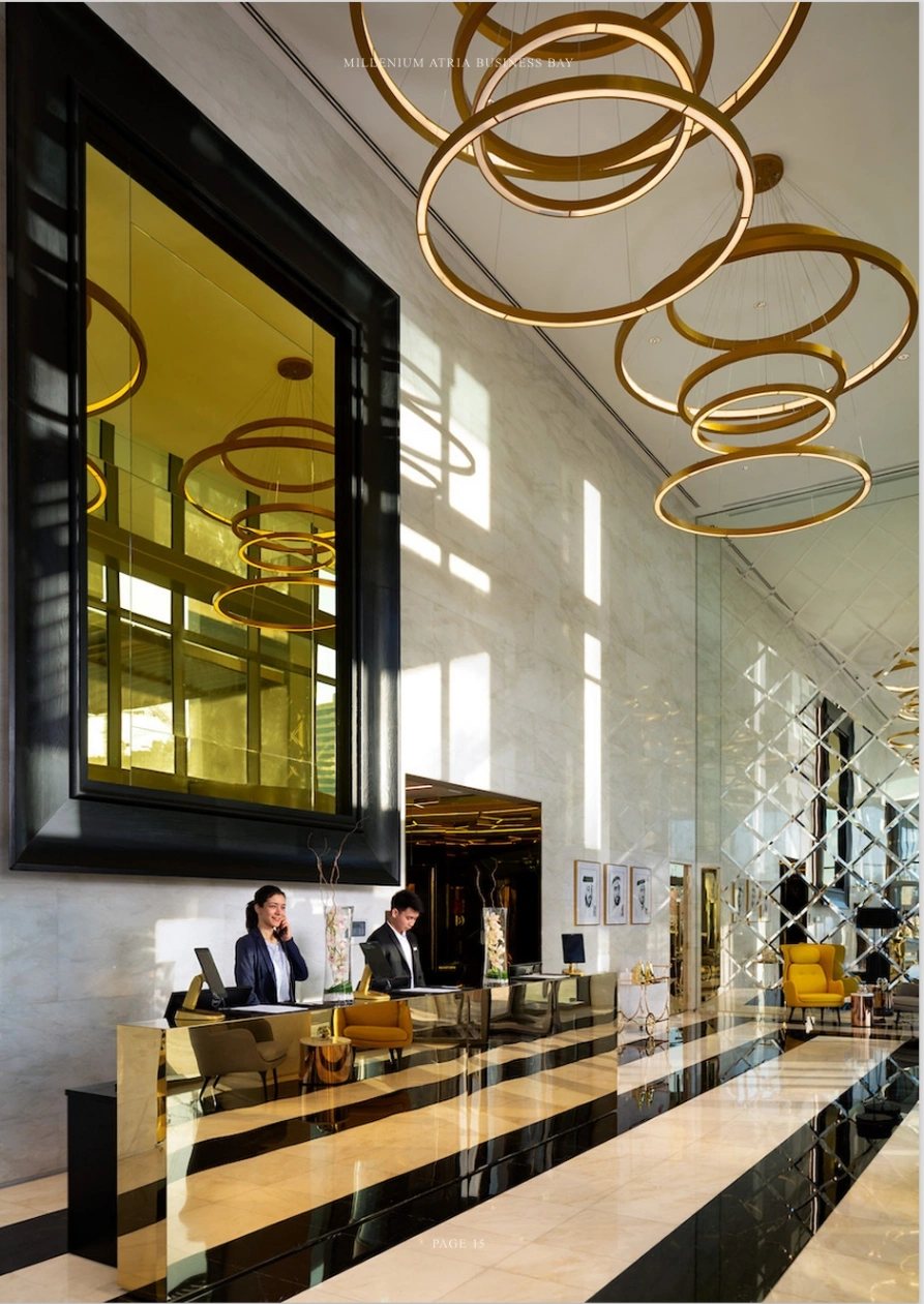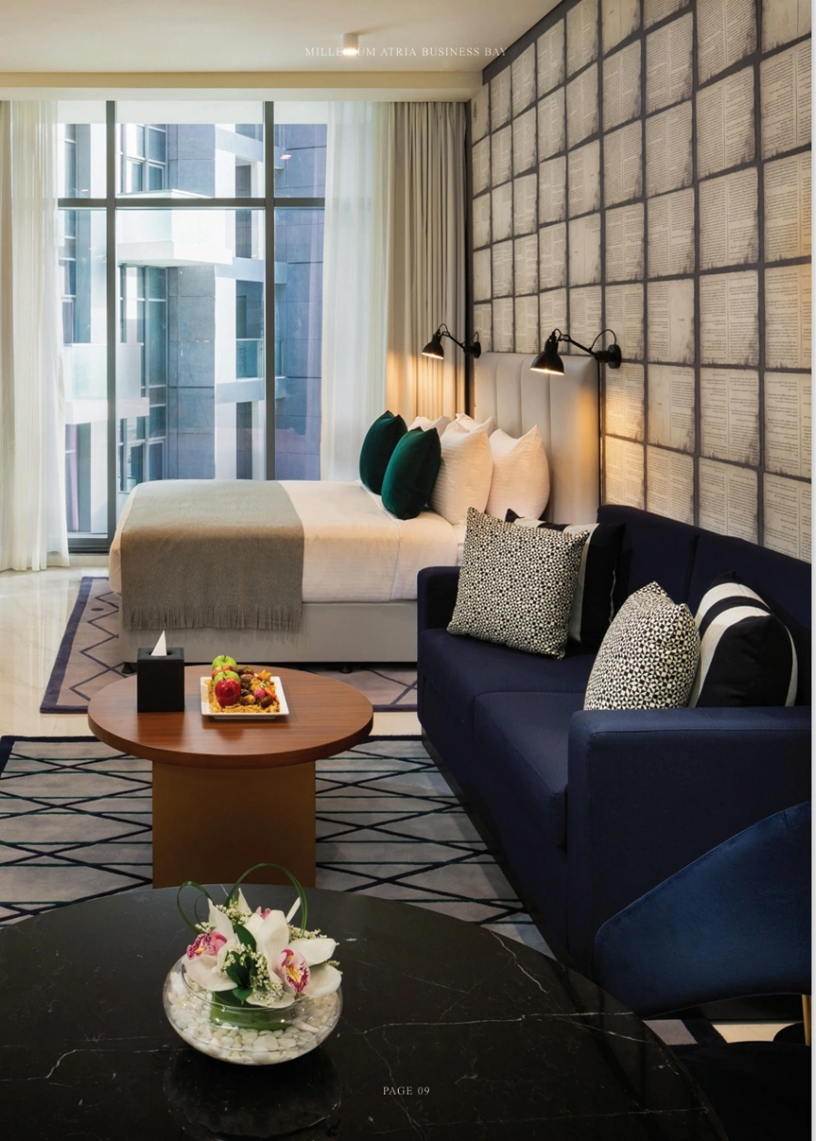 The Atria at Business Bay is a well-appointed hotel apartment tower and a 30-storey residential tower. Offering studios, 1, 2 & 3-bedroom units with panoramic views of Dubai's skyline, Business Bay Canal, and the Burj Khalifa.Situated in the business capital of Dubai, The Atria is placed near the Burj Khalifa, the world's tallest building, Dubai Mall and the Dubai Fountain, the world's largest water fountain.The facilities included at the Atria hotel apartments increase the value of living for its residents: 5-star spa, fully-equipped fitness centre, gourmet restaurants, residential and visitor parking spaces.Here, each apartment has a characteristic personality and flair with a key focus on effortlessness, functionality and urban stylishness paired with the latest smart home technology.