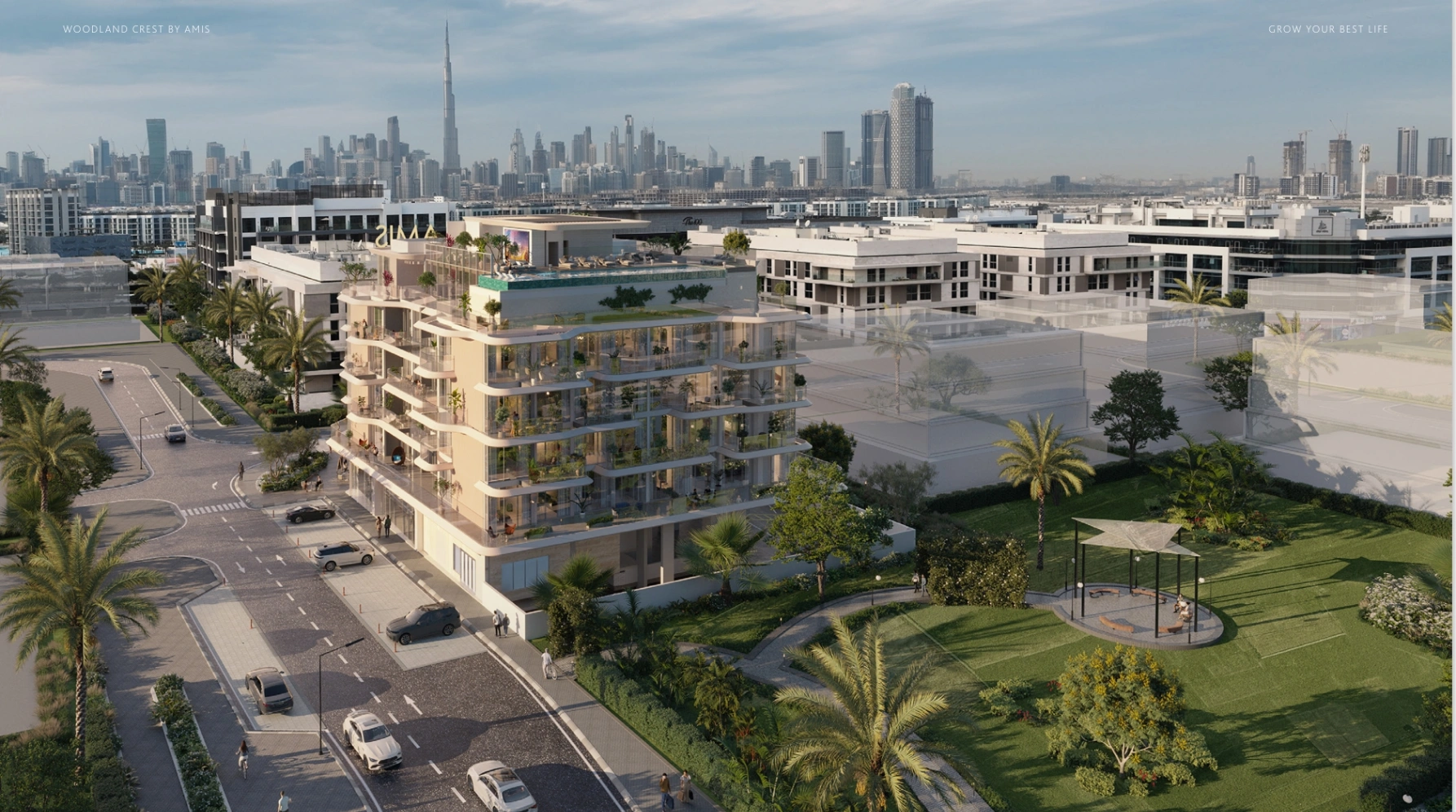 Woodland Crest by AMIS is a harmony of modern design and natural tranquility in the prestigious district of Meydan, just 4 kilometers away from Downtown Dubai. The project combines eco-friendly landscaping, wellness infrastructure and smart technologies for comfortable living. Architecture featuring simple lines and minimalist design, spacious balconies with panoramic views and low building density create a cozy atmosphere.Beyond the elegant facades hides intelligent automation — from temperature and lighting control to a security system that operates with electronic keys and video surveillance. Energy efficient solutions including VRV/VRF climate control and smart lighting, as well as pre-installed communications eliminate the hassle. Woodland Crest at Meydan Avenue is a place where technologies invisibly work to make life easier and more comfortable.Properties at Woodland Crest by AMIS feature a collection of only 50 1 and 2 bedroom apartments. The size ranges from 631 sqft (59 m²) to 1,675 sqft (156 m²). The interiors are designed in neutral tones with premium solutions: Italian tiles, stone countertops, built-in appliances by leading brands. Large windows and open floor plans allow the rooms to be filled with natural light, making them even more cozy.Living at Woodland Crest at Meydan Avenue represents daily comfort and self-care. The rooftop of the complex features a swimming pool with panoramic views of the emirate, including the Burj Khalifa. You can also relax in the spa zone with a hammam and sauna or work out in the fitness center. Landscaped gardens and lounge spaces create a private atmosphere. And the cosy, co-working-style AMIS Café is the perfect place to work or meet with friends.