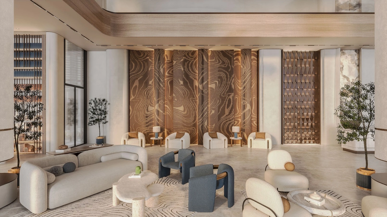 A 103-story residential complex known as Beverly Grande is being proposed for the vibrant Motor City in Dubai. HMB Homes is in charge of the project’s development. Beverly Grande brings together a collection of gorgeous studios, 1, 2, and 3-bedroom apartments spanning between 411 sq ft. and 2096 sq ft. with private pools. There are a total of 296 apartment units set up within a building configuration of B+G+10F.This is a home where luxury residential interiors prioritize smart home technology. Every detail at Beverly Grande apartments is carefully mapped out to evoke an atmosphere of ultra comfort and opulence, where light, air, and movement create infinite possibilities. While there is a versatile layout set for work, play, relaxation, and social enjoyment, the kitchens smoothly introduce German branded Bosch kitchen appliances.At Beverly Grande, the facilities are exceptional. On the ground floor some of the amenities include a coffee corner which can be accessed free of charge. Other amenities include a corner library - co-working space, a sitting area outside with shallow water pools facing the boulevard.On the 1st floor you will find an open cinema, a lagoon style large pool and a pool bar. The ping pong table, table tennis, jogging track, kids splash area, plunge pool for kids, indoor gym, clubhouse and gaming room, Zen garden, mini golf are also other amenities. The roof-top forms a paddle tennis court, sky garden, sitting area, BBQ area, and spacious lounge zones.