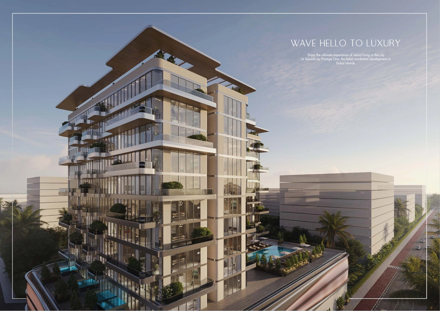 Seaside by Prestige One Developments unveils a new paradigm of luxury living at Dubai Islands, offering 1, 2, and 3-bedroom premium apartments. The leisure designed façade spread across its 10-floor development epitomizes the fusion of urban sophistication with the tranquil allure of Island life. Each residence is meticulously designed with floor-to-ceiling windows and expansive balconies, seamlessly integrating the surrounding seascape into the living space. The modern architecture boasts clean lines and a tiered structure for both privacy and panoramic views. Residents are greeted by a grand double-height lobby, setting the tone for the exclusive retreat that awaits them.Upon arrival, residents are welcomed into the grand double-height lobby, a space thoughtfully designed to be a sanctuary from the moment they step through the doors. From there, a suite of refined amenities awaits, designed to elevate every aspect of waterfront living. Residents can unwind in the spa pools, take a refreshing dip in the swimming pool, or enjoy quality time with family at the kid's pool and play area.