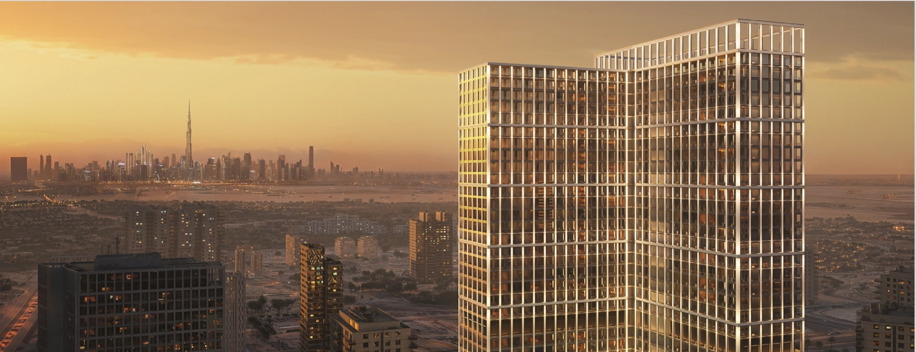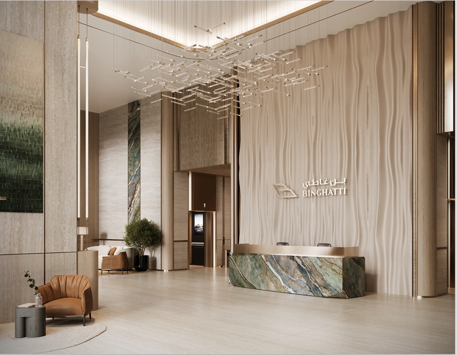 Binghatti Vintage is a significant and large-scale project by Binghatti Developers, located in the heart of Majan, part of Dubailand, one of the prominent and dynamic areas of the emirate. It is a futuristic tower with distinctive façades, where dynamic geometry is combined with the brand's signature gridded architecture. Rising to a height of 158.6 metres, Binghatti Vintage will be the tallest residential complex in Majan. The structure comprises three levels of underground parking, a basement, a mezzanine, four technical floors, 36 residential floors and a mechanical roof. The architecture emphasises verticality and modularity, while the developer's recognisable style makes the project a landmark in the urban environment.According to Binghatti Developers, the complex will accommodate 1,572 residences, setting another record for Majan. Properties at Binghatti Vintage are available in the format of studios and one- and two-bedroom apartments, including luxurious Royal Suites. Each residential floor of the complex houses up to 44 units. The size varies from 372 sqft (35 m²) to 2,271 sqft (211 m²). All spaces are designed with an emphasis on comfort and aesthetic pleasure: large floor-to-ceiling windows, Binghatti's signature ergonomic layouts, spacious balconies and elegant finishes in a light colour palette. The interiors are styled in a timeless, minimalist way and in line with the brand's design philosophy, using premium materials and functional options, such as home automation systems.