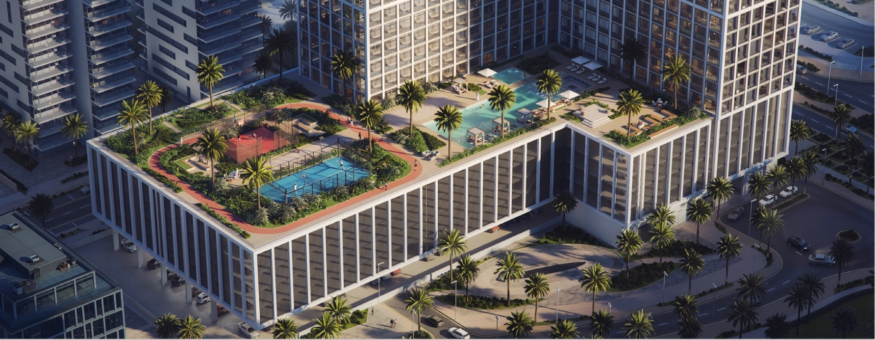 The infrastructure of Binghatti Vintage at Majan is designed for everyday life and leisure and includes 15+ premium amenities — an outdoor swimming pool, gym, lounge areas surrounded by landscaped gardens, running and cycling tracks, a spa space, a children's playground and playrooms. Exclusive options include an outdoor cinema, padel tennis and basketball courts. The project also provides 24-hour security, concierge service and zoned parking with EV charging points.Location is the project's strong point. Binghatti Vintage is nestled within Majan, a multifunctional cluster with residential, commercial, and green areas, as well as high investment activity. Residents of the complex have direct access to Sheikh Mohammed Bin Zayed Road (E311), providing quick links to other key Dubai highways and neighbouring areas such as Al Barari, Living Legends and Dubai Silicon Oasis. The drive to DXB and DWC International Airports takes about 20-25 minutes. Dubai Marina and Downtown Dubai are the same distance away. Within a 10-minute drive radius are the iconic Global Village and IMG Worlds of Adventure, as well as the green belt of Al Barari. Supermarkets, cafes, pharmacies, beauty salons, private and public schools, nurseries and medical centres are within walking distance. Large retailers like Spinneys and West Zone operate nearby, and hotels and commercial facilities are actively under construction, which increases the potential of property at Majan.