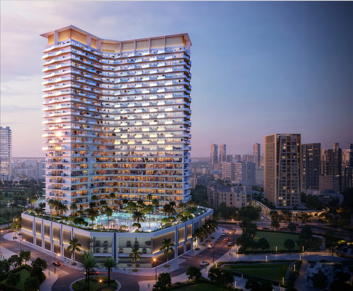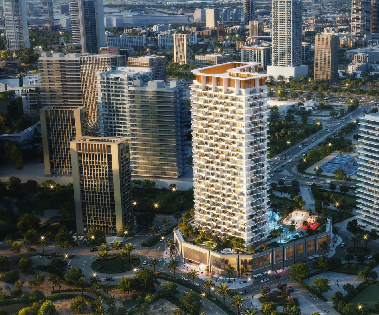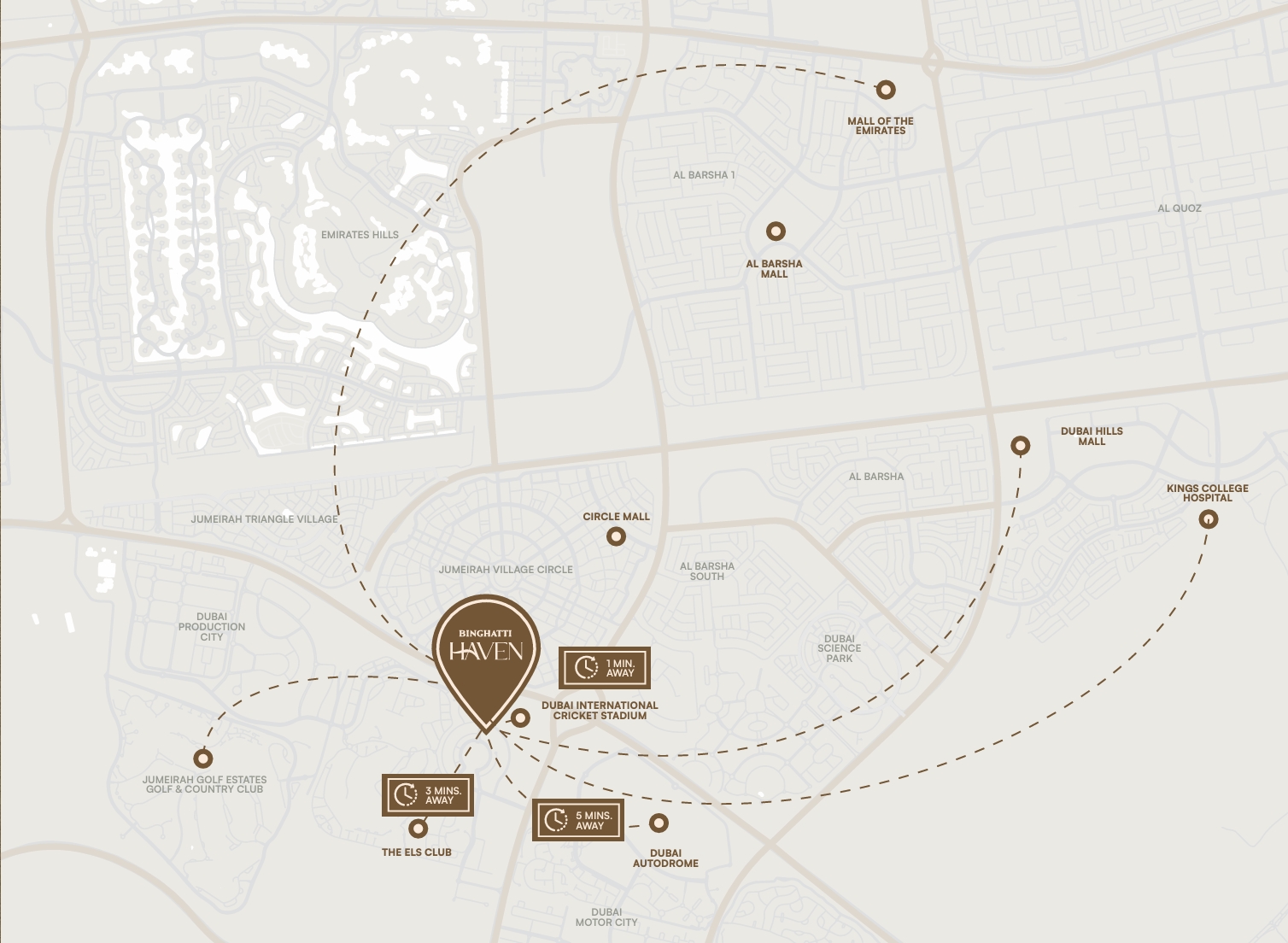 inghatti Haven is a prestigious 26-storey development by Binghatti Developers located in the heart of Dubai Sports City. It offers a range of studios and one- to three-bedroom apartments. The residences feature thoughtfully designed layouts and range in size from 385 sq. ft. to 1608 sq. ft.Each home is crafted with exquisite finishes, balancing cool marble with the warmth of natural wood for a refined and inviting ambience. Spacious balconies complement every residence and provide stunning views of the lush green surroundings.Binghatti Haven is designed to elevate everyday living with an array of premium amenities. Residents can enjoy a swimming pool, Jacuzzi, walking/jogging tracks, paddle tennis court, and a hedged maze. Additional features include a children’s pool, a basketball court, and much more.Binghatti Haven is located adjacent to Sheikh Mohammed Bin Zayed Road, offering exceptional connectivity to various areas across the emirate. Travel time to Business Bay and Dubai Marina is just 15 minutes by car, while Dubai International Airport is approximately 25 minutes away.Situated in the heart of the vibrant Dubai Sports City, the development is surrounded by premium amenities, including a championship golf course, tennis and padel courts, a cricket pitch, and the home stadium of the Dubai Knights Eagles rugby club. Motor City, Dubai Hills, and City Centre Me’aisem are just a short drive away.Families will appreciate the apartment’s spacious layout as well as the proximity to prestigious schools and medical facilities. Nearby institutions include Victory Heights Primary School, Dwight School Dubai, The Royal Grammar School, and healthcare services at Aster Clinic & Pharmacy. For everyday shopping, Al Maya, Grandiose, and Big Value supermarkets offer convenient options.
