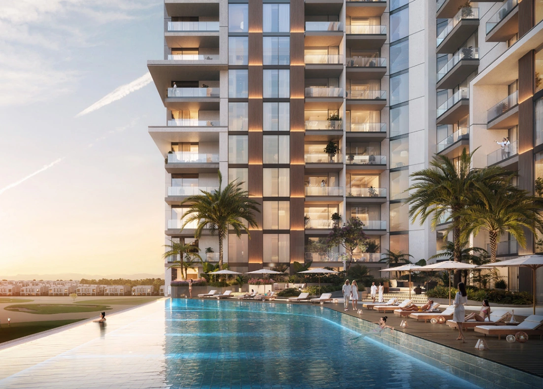 Al Hamra Greens – Ghaf Tower stands out for its unique architectural design that seamlessly blends modernity with nature-inspired elements. The exterior showcases sleek, contemporary lines complemented by expansive glass facades that maximize natural light and offer stunning views of the surrounding greenery and Al Hamra Village. The landscaping emphasizes open green spaces, pedestrian-friendly pathways, and communal areas that encourage social interaction while maintaining privacy. Inside, the interiors are thoughtfully designed with a focus on functionality, elegance, and comfort, featuring high-quality finishes, spacious layouts, and modern fixtures that cater to urban lifestyles. The project integrates sustainable design principles, including energy-efficient systems and eco-friendly materials, creating a harmonious living environment that combines aesthetic appeal with practical living. Overall, Ghaf Tower’s architecture, interiors, and landscaping collectively offer a distinctive, contemporary lifestyle that is both luxurious and community-oriented.