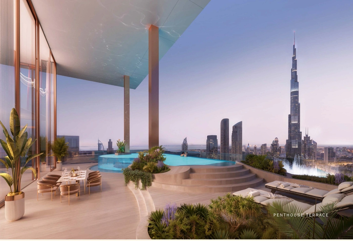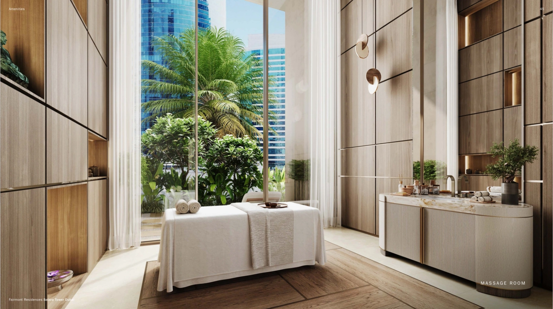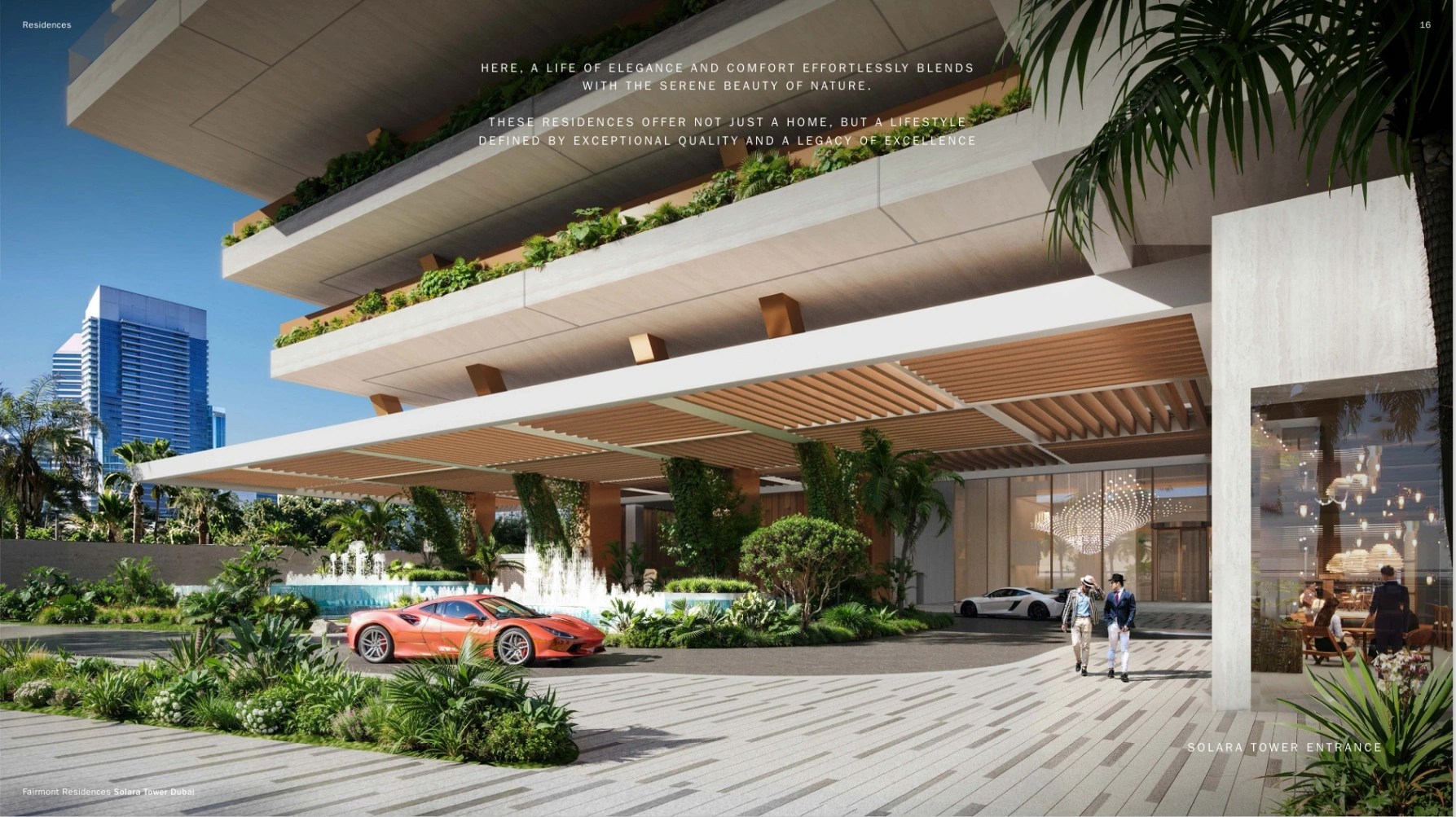 The project includes an exclusive selection of 246 meticulously crafted 1-4 bedroom apartments and 5-bedroom duplex penthouses from 1,106 sq. ft to 19,637 sq. ft, each featuring ample terraces. These lodgings are not just living spaces but vantage points offering breathtaking vistas of the iconic Burj Khalifa, Dubai Water Canal, and The Dubai Fountain. Culinary enthusiasts will delight in the state-of-the-art kitchens, lavishly equipped with premium Miele appliances, setting the stage for exceptional home cooking and entertainment experiences. All units, except 1-bedroom apartments, include a maid’s room.The Fairmont Residences Solara Tower Dubai goes above and beyond to offer a spectrum of unparalleled amenities designed for the ultimate lifestyle of comfort and luxury. Residents can indulge in 2 swimming pools, including a rooftop oasis offering awe-inspiring views of Downtown Dubai and the Burj Khalifa, alongside gourmet F&B options, serene zen gardens, and a sumptuous spa complete with massage rooms, steam, and sauna facilities. The active and wellness-minded will find their haven with an outdoor yoga area, a padel court, and a state-of-the-art golf simulator. Not forgetting a cinema room, 2 meeting rooms, a pool bar, and a versatile yoga zone.Ensuring a seamless living experience, Fairmont Residences Solara Tower Dubai also offers comprehensive core services covered by the service charge. This includes an attentive concierge, doorman & valet services, robust security measures, and more, all designed to foster an environment of ease, safety, and exclusivity for its residents.