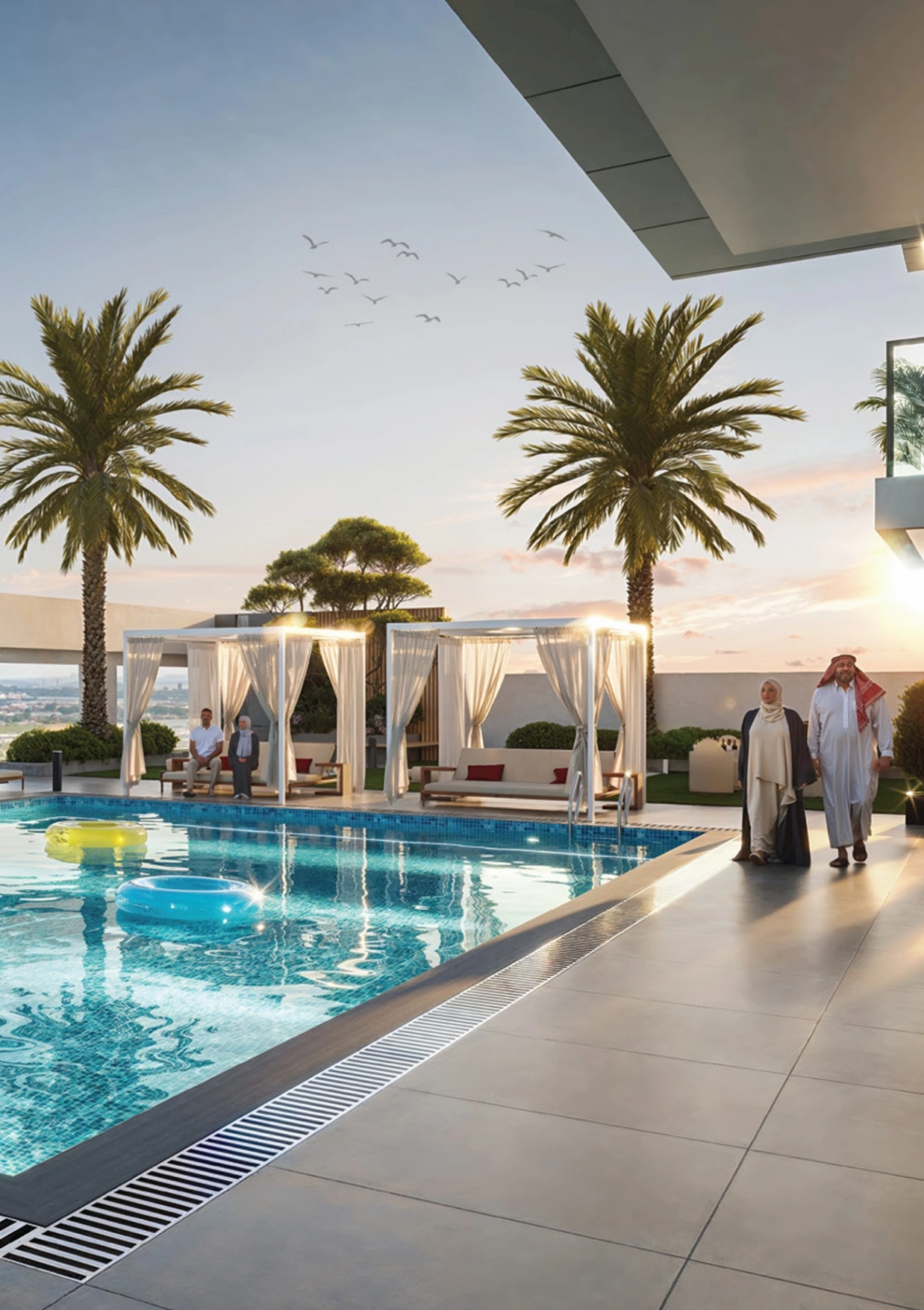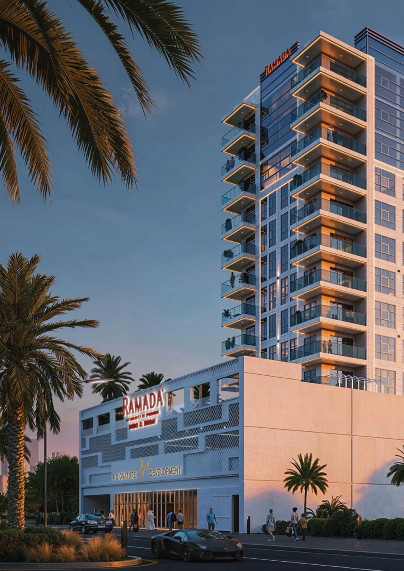 Ramada Residences by Wyndham is a stylish building designed in a contemporary minimalist way: a large podium section, 11 residential floors and a maintained rooftop. Vertical zoning, minimalist façades and glass surfaces emphasise the elegant character of the tower. The layouts are designed to cater to everyday scenarios, with private areas separated from guest zones and each lot allocated a parking space. Ceiling heights are 2.7 m. The apartments at Ramada Residences by Wyndham are designed using a neutral palette and natural textures — matte stone, wood accents, composite surfaces — creating a calm backdrop for personalisation. All residences come with built-in wardrobes and central air conditioning. The kitchens are equipped with furniture and appliances and are gas-powered, which is rare for this segment.The infrastructure of Ramada Residences by Wyndham at Al Jaddaf includes a 14×8 m swimming pool, a gym, a residents' lounge area, a Zen garden and an open-air rooftop cinema. The complex also features a BBQ terrace, a children's playground, a multi-purpose sports centre, a reception, retail spaces and parking with EV charging stations. In addition, owners of properties at Ramada Residences by Wyndham are provided with a hotel service package, ranging from housekeeping, laundry and airport transfers to spa treatments, babysitting services and personal chef hire.
