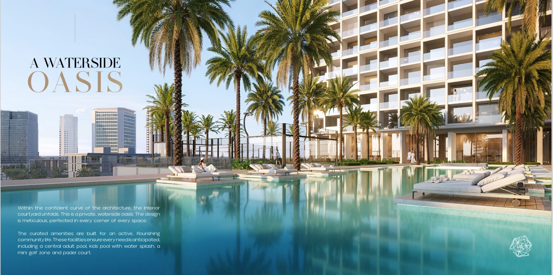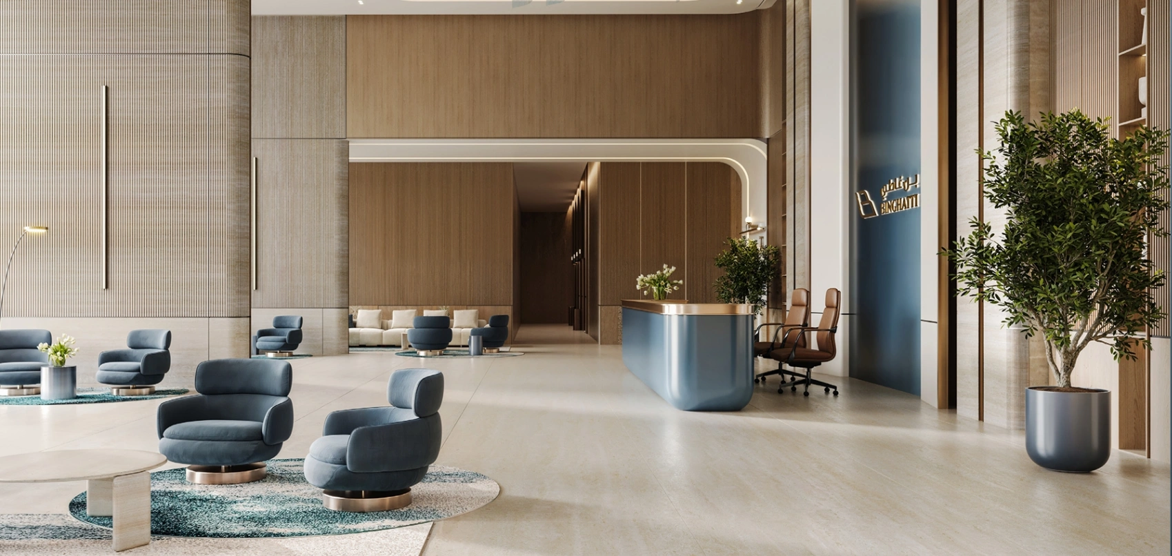The interiors of the apartments at Binghatti Cullinan feature modern finishes, practical flooring and a neutral colour palette that is easy to complement with your own furniture and décor. Large windows provide good natural light, and many layouts feature spacious living rooms with open-plan kitchens and convenient zoning. The kitchens in these apartments at Al Jaddaf are fully equipped with work surfaces with wear-resistant countertops, space for built-in appliances, and a well-thought-out storage system. The bedrooms have built-in wardrobes, designated dressing areas, and separate bathrooms.Residents of the apartments at Binghatti Cullinan at Al Jaddaf will have access to an outdoor swimming pool on the podium level, a modern gym, a sports ground, and several recreation areas. The development has a green lounge and a playground. Underground and podium parking is provided for cars. The lower floors may feature a supermarket, cafes, and everyday services.