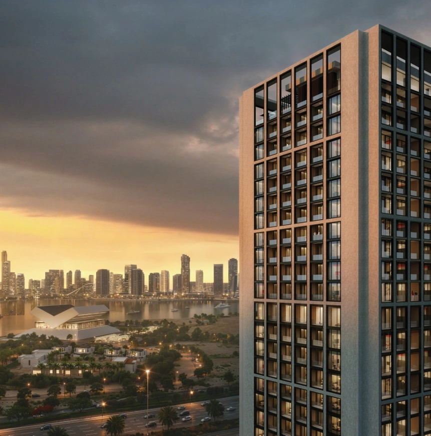 Binghatti Twilight is a new project of a successful developer, conveniently located in Dubai's Al Jaddaf. The development features crystal glass facades that create interesting visual effects. The project has 4 underground levels, 3 office floors, and 18 residential floors. Property at Binghatti Twilight includes 1-3 bedroom apartments, with 228 units available for sale. There are also 47 offices and 2 commercial spaces on the ground floor. Each residence is very well designed: open floor plans, high quality finishes, brass accents, built-in smart home systems, and modern appliances ensure the beauty of the living spaces and comfort for residents. And thanks to floor-to-ceiling windows, the apartments at Twilight by Binghatti offer impressive views of the Burj Khalifa, Dubai Creek Harbor, and Business Bay Crossing. The residences at Binghatti Twilight range in size from 743 sqft (69 m²) to 1,980 sqft (184 m²), making it easy to find an option to suit different needs and preferences.When it comes to amenities, Binghatti Twilight has a lot to offer — a rooftop infinity pool with impressive views of Dubai, a high-end fitness center, picturesque gardens and relaxation areas for residents, a playground, shops right on the community grounds, and a concierge service. Thanks to the internal infrastructure, living in Binghatti Twilight is very comfortable, plus everything you need is always close by.
