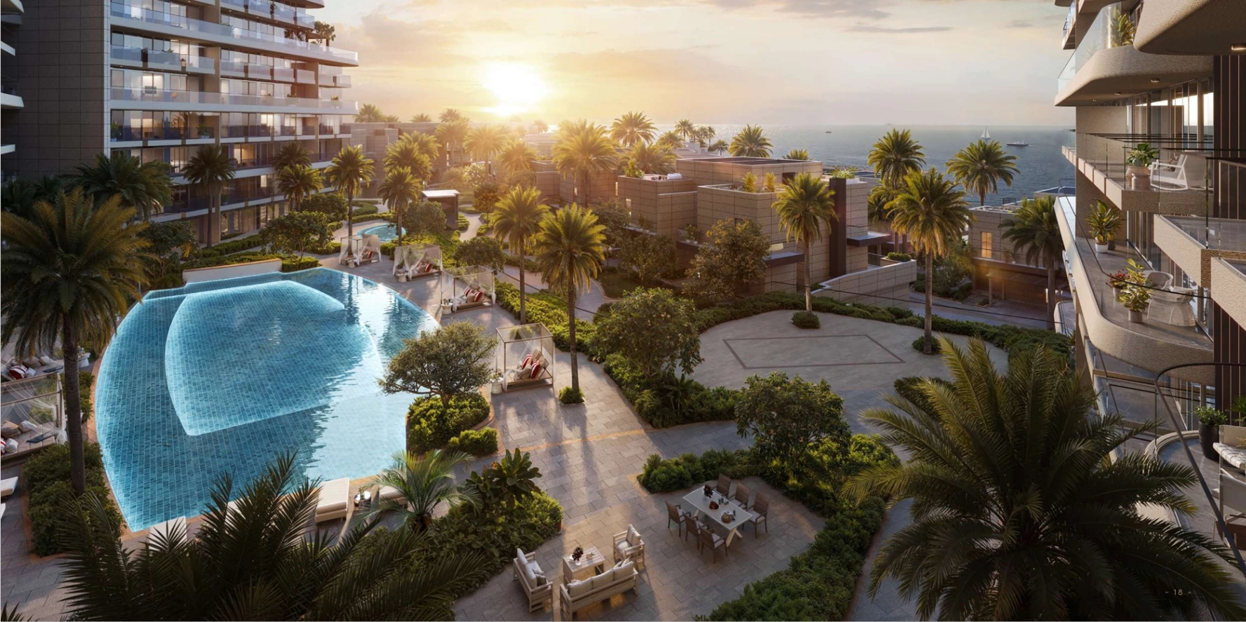 Nasim Al Bahr Residences Luxury Collection is a new coastal community at Al Marjan Island in Ras Al Khaimah, developed by Abu Dhabi National Hotels in partnership with The Luxury Collection brand from the Marriott portfolio. This project features apartments, penthouses, townhouses, and villas with direct access to a private lagoon, and the residents will enjoy the level of service expected of a flagship resort hotel.The interiors are decorated in a light palette with an emphasis on natural materials, high ceilings, and large windows. All living areas, kitchens, and bedrooms feature stylish furnishings, as well as built-in storage systems and finishes on par with the best hotels. The same can be said about the bathrooms, which feature stone surfaces, double sinks, and hotel-standard fixtures. For investors, this means the property is ready for daily or long-term rental without additional investment.The project includes 1-3-bedroom apartments and 4-5-bedroom penthouses, as well as 3-bedroom townhouses and a variety of villas on the coastline — these are so-called beach villas, podium villas, and the flagship presidential villa. The planned completion date for the project is Q1 2028.